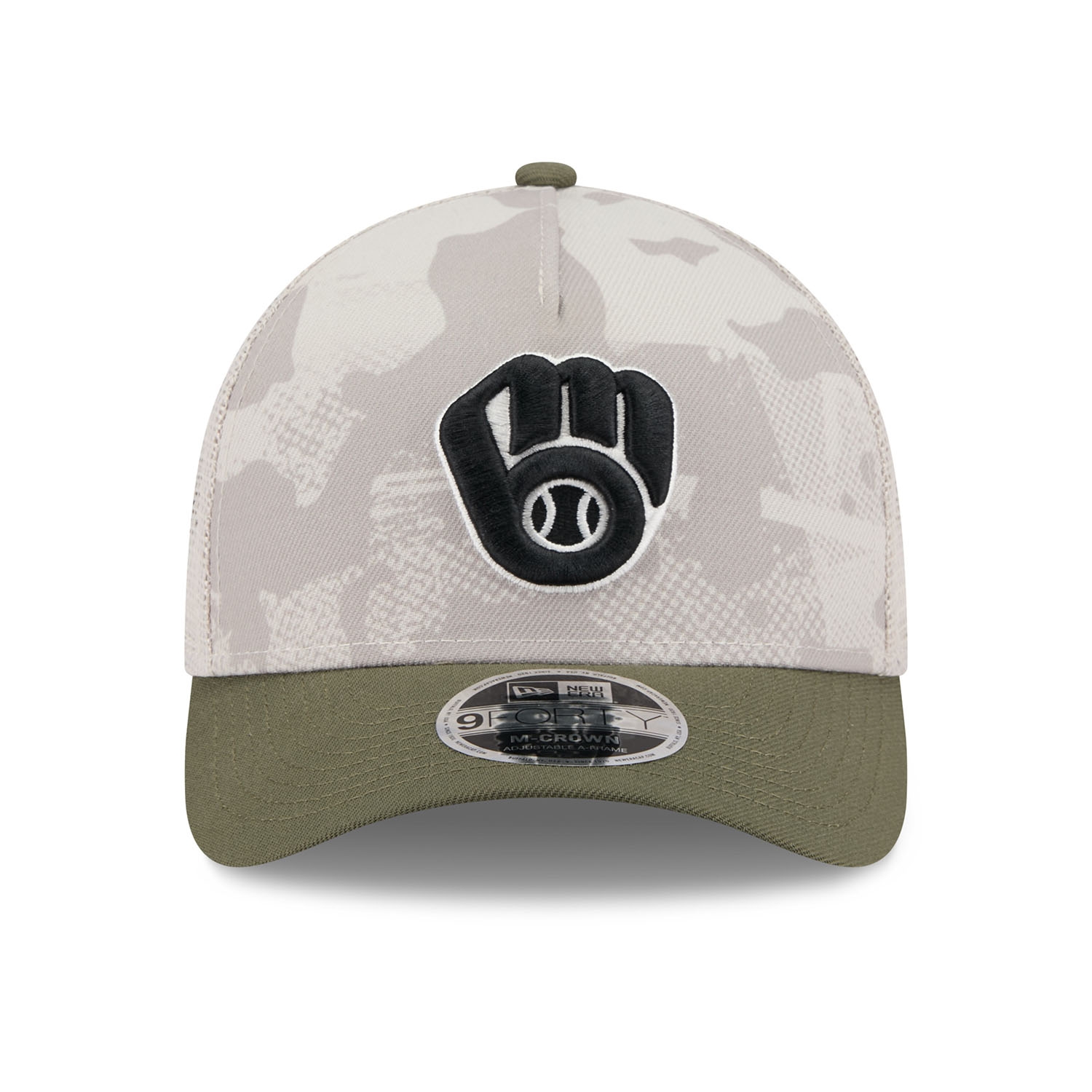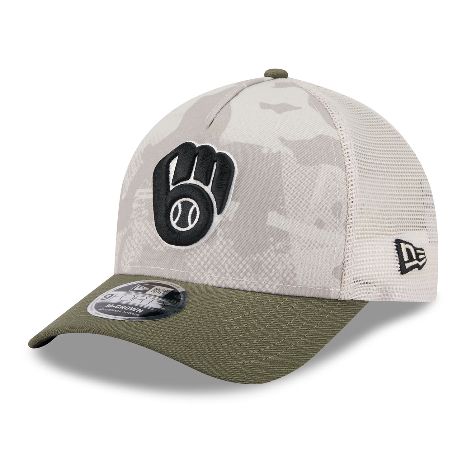 New Era Official 2025 MLB Armed Forces Day Campaign 9FORTY M-Crown A-Frame Snapback Trucker Hat from your Milwaukee Brewers.