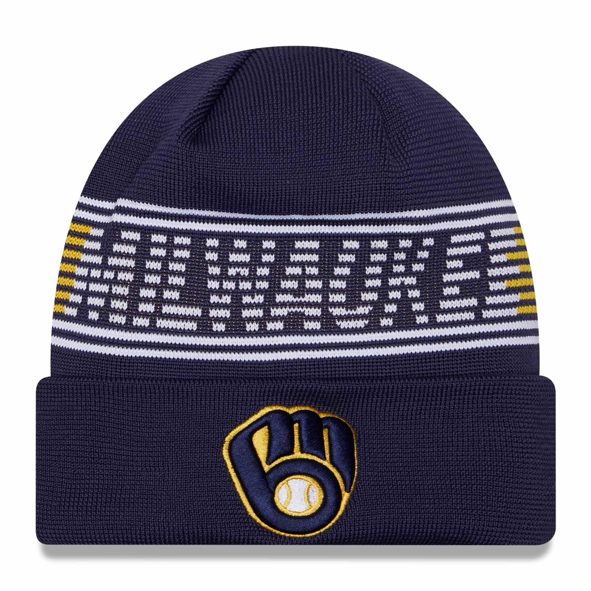 New Era Baseball 2024 MLB Clubhouse Collection Beanie Knit Hat from your Milwaukee Brewers.