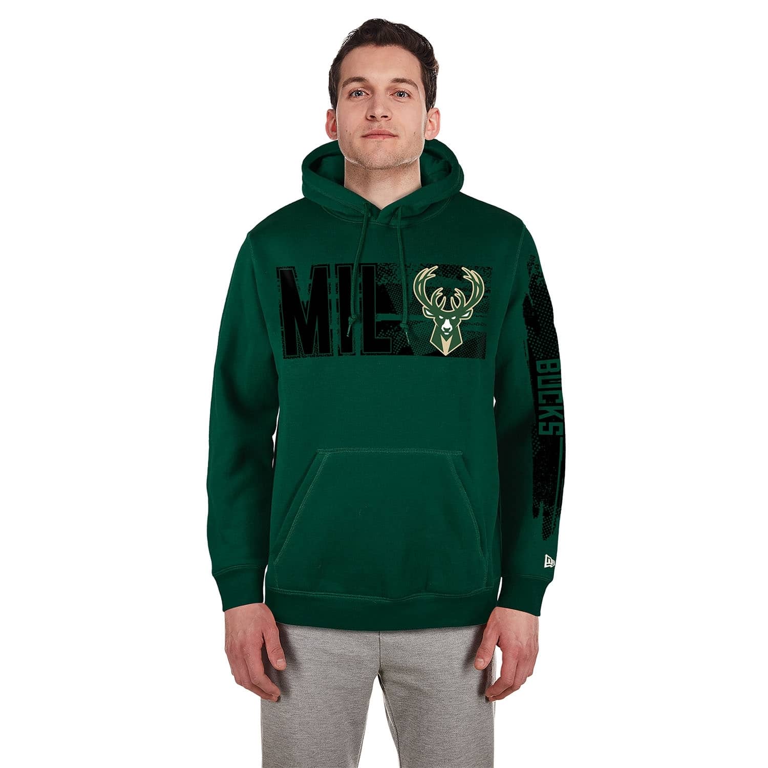 New Era Men's NBA Team Logo Basketball Hooded Sweatshirt with Milwaukee Bucks decoration. Features : Premium Pull-over long sleeve hooded sweatshirt by New Era. Screenprinted Milwaukee Bucks team logo and...