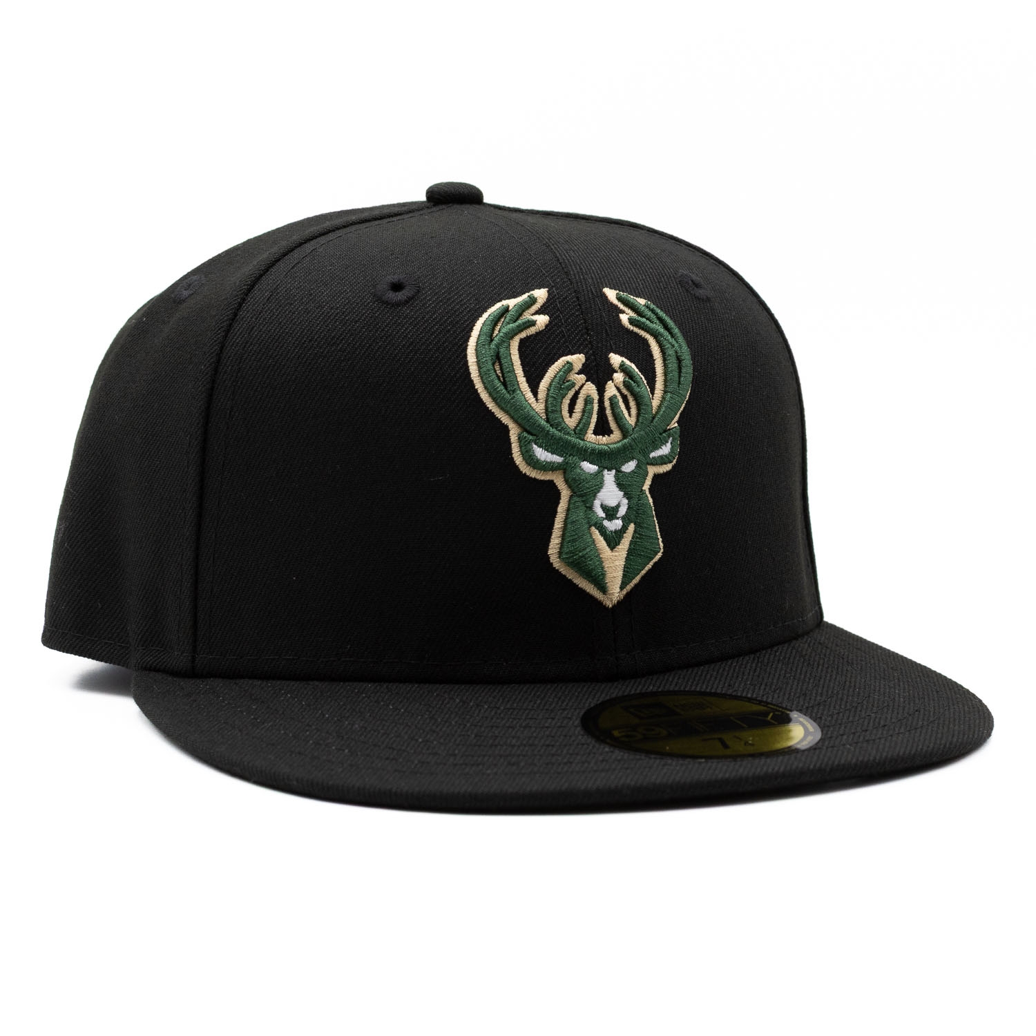 New Era NBA Black 59FIFTY Fitted Basketball Hat from your Milwaukee Bucks.