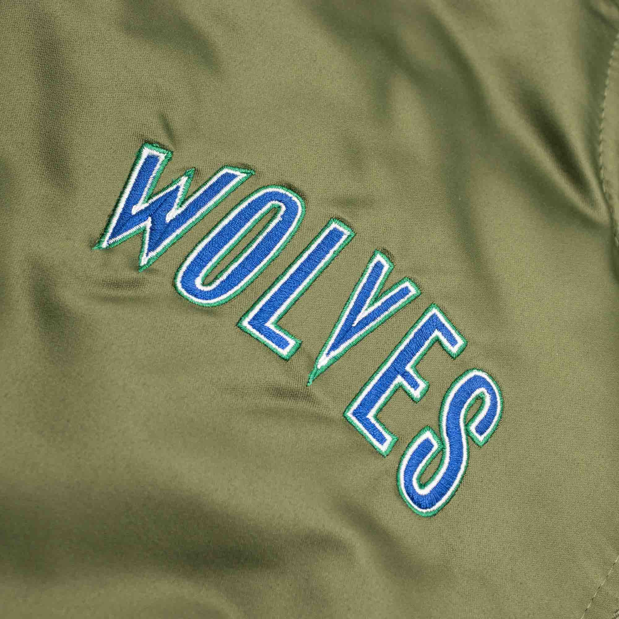 Minnesota Timberwolves Olive Mitchell & Ness Heavyweight Satin NBA Jacket
