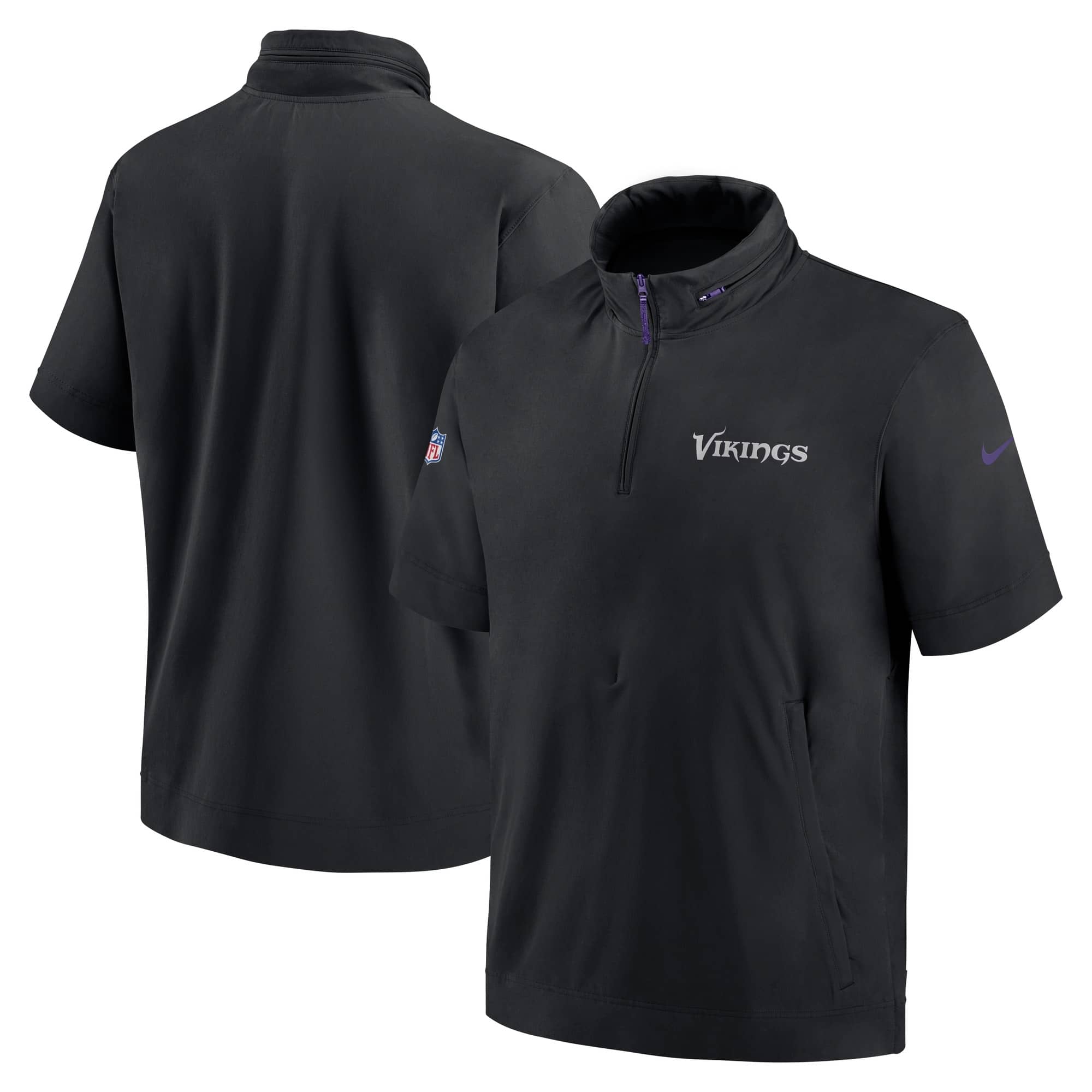 Nike Men's American Football 2024 NFL On-Field Sideline Coach Short Sleeve Quarter-Zip Performance Jacket from your Minnesota Vikings.
