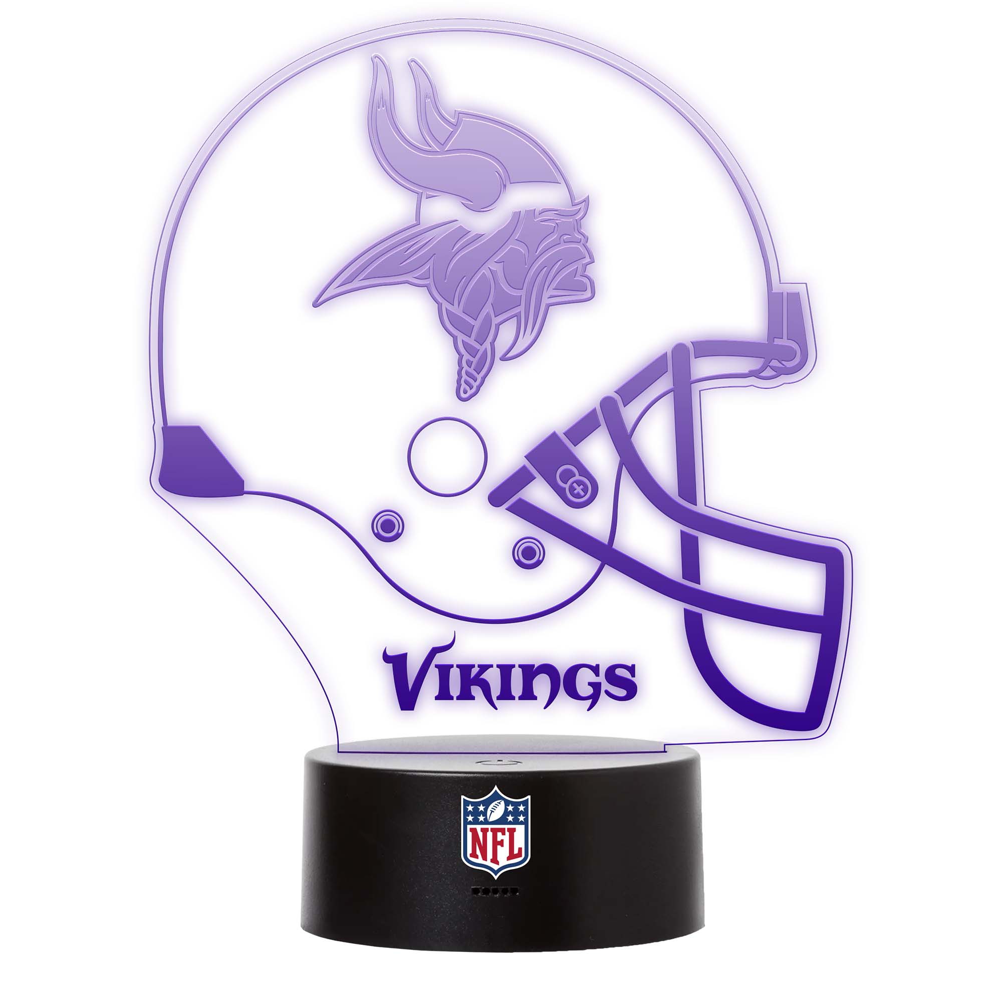 The LED team logo helmet sign lights up all NFL eyes! The laser-engraved acrylic sign comes in an authentic American football design including your Minnesota Vikings team helmet. The sign can be assembled easily with the included NFL base. With the multi-color LED, you can set your favorite color or activate the automatic color change. But even when not illuminated, the NFL LED sign looks great and shouldn't be missing in any NFL fan cave. Easy use with USB or battery power.