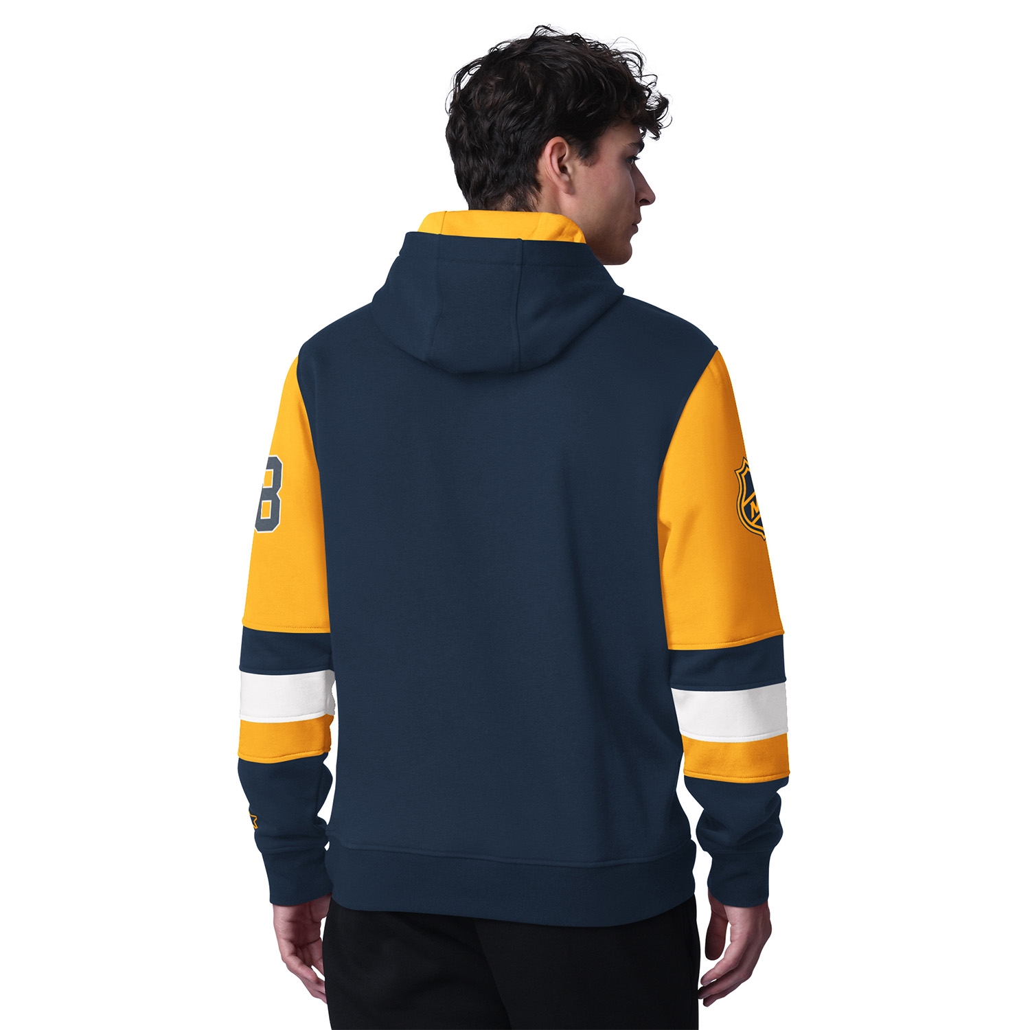- Team Colors: The body comes in the primary team color with an overlapping hood in matching tones. The sleeves feature secondary team color and white accents for a dynamic, eye-catching look.