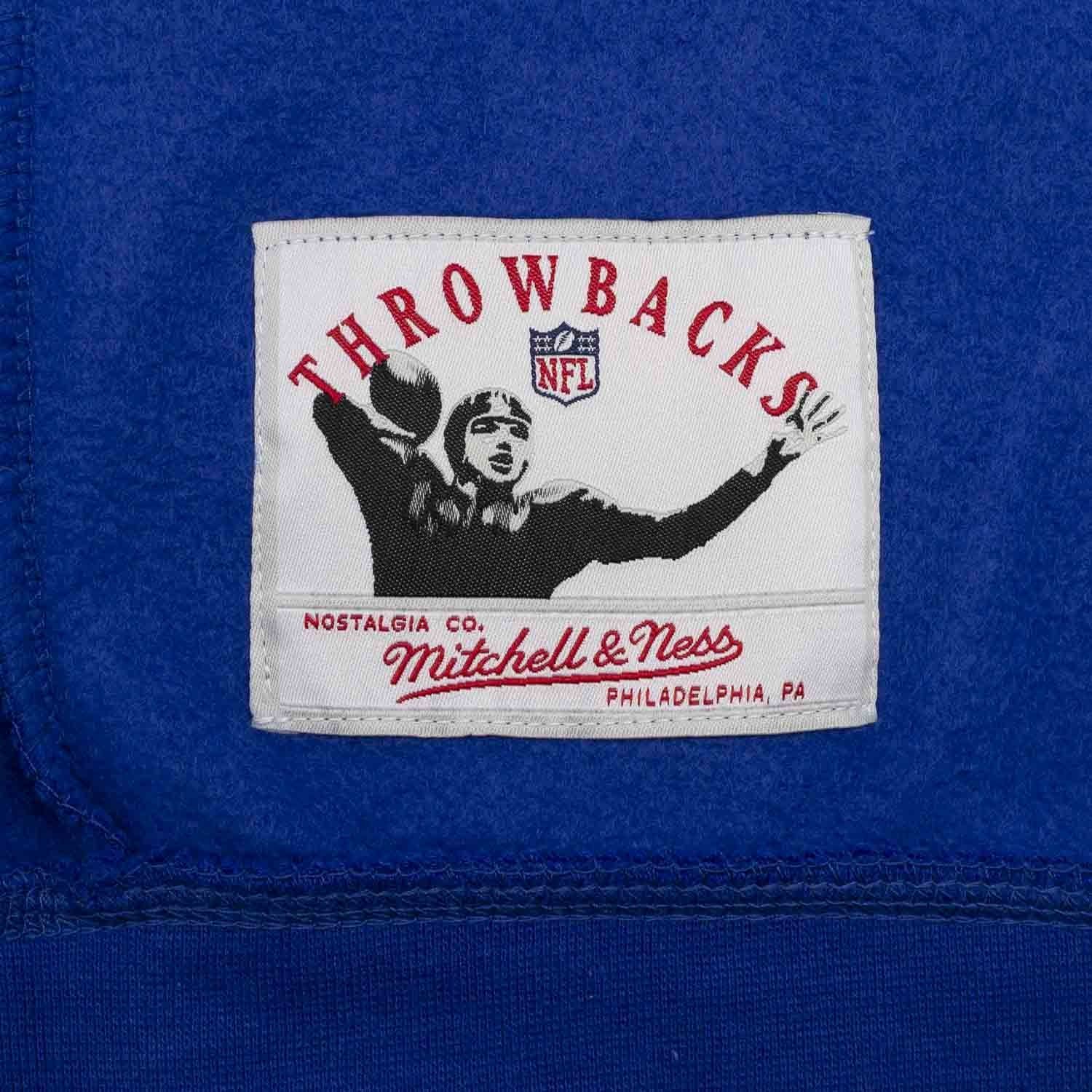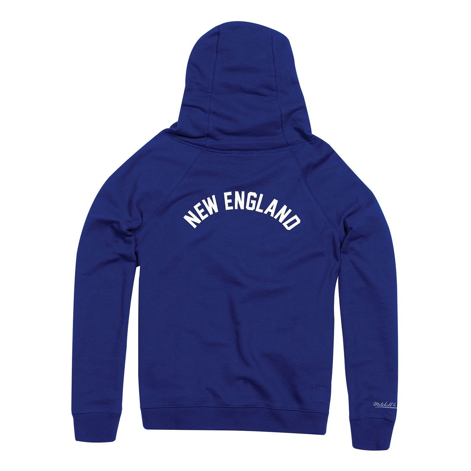 Premium quality New England Patriots Hooded Pullover Women's Sweatshirt by Mitchell and Ness. Embroidered throwback team logo on left chest and back felt team wording. NFL Throwbacks woven jocktag at inner left hem and Mitchell & Ness wording on right bottom sleeve. With two single welt pockets and a slouchy hood with drawcord closure.