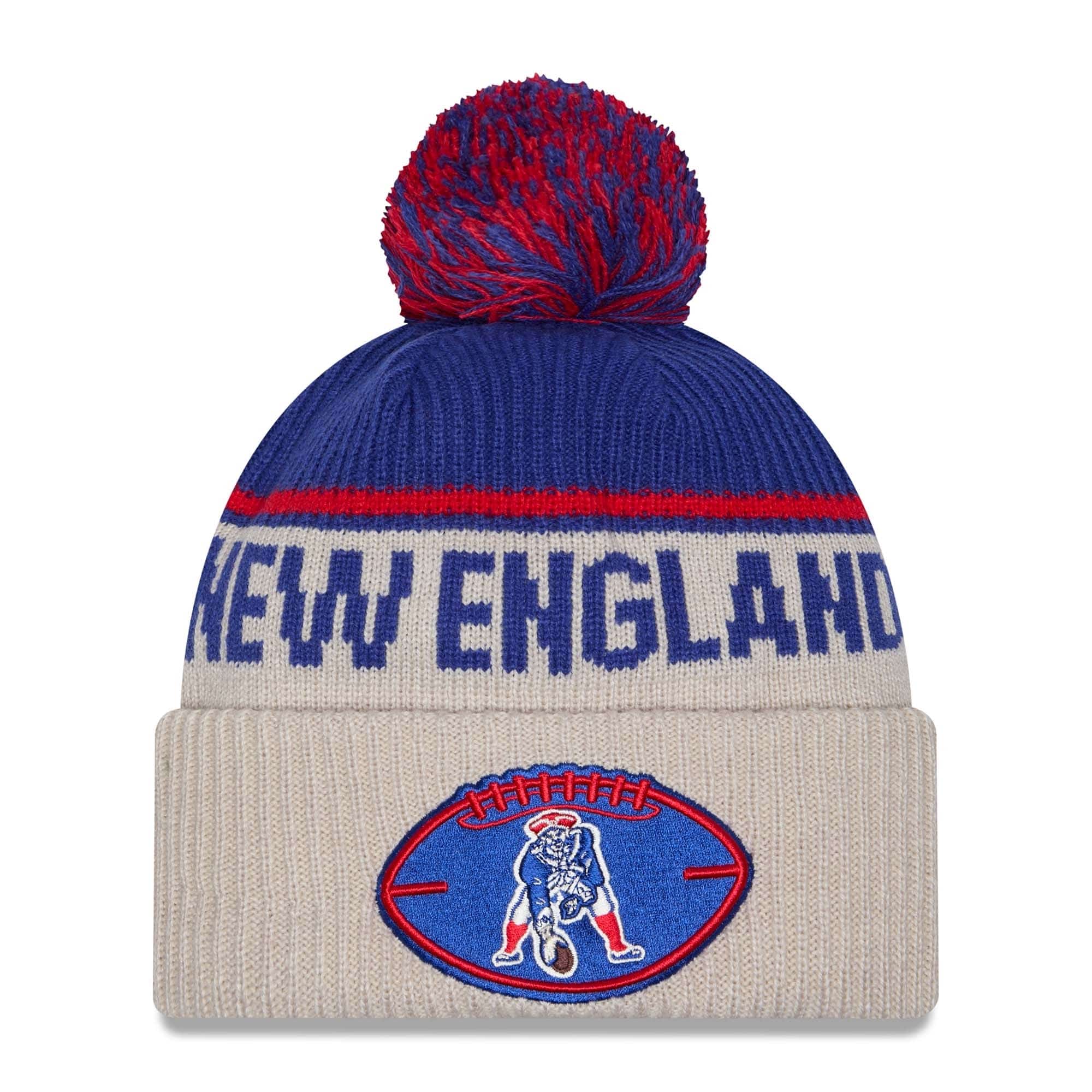 New Era American Football Historic Throwback Knit Hat with Pom from your New England Patriots.