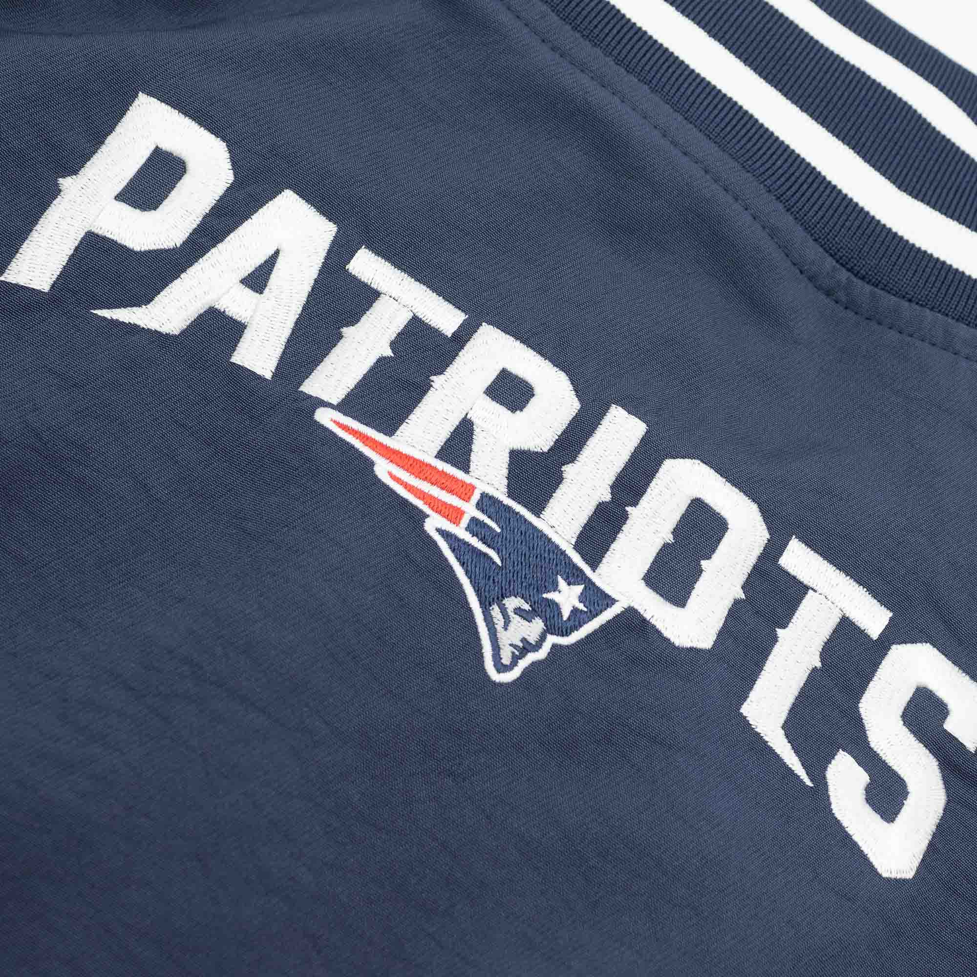 The Nike Sideline Coach Edition Bomber Jacket is an absolute must-have for your team outfit. The New England Patriots team logo is expertly embroidered on the left chest, while the back impresses with the embroidered team wordmark. The ribbed sleeve ends are coordinated in the team colors, providing a classic contrast to the jacket's main color. The right sleeve is embroidered with the official NFL Sideline Shield, and the left sleeve features the Nike logo.