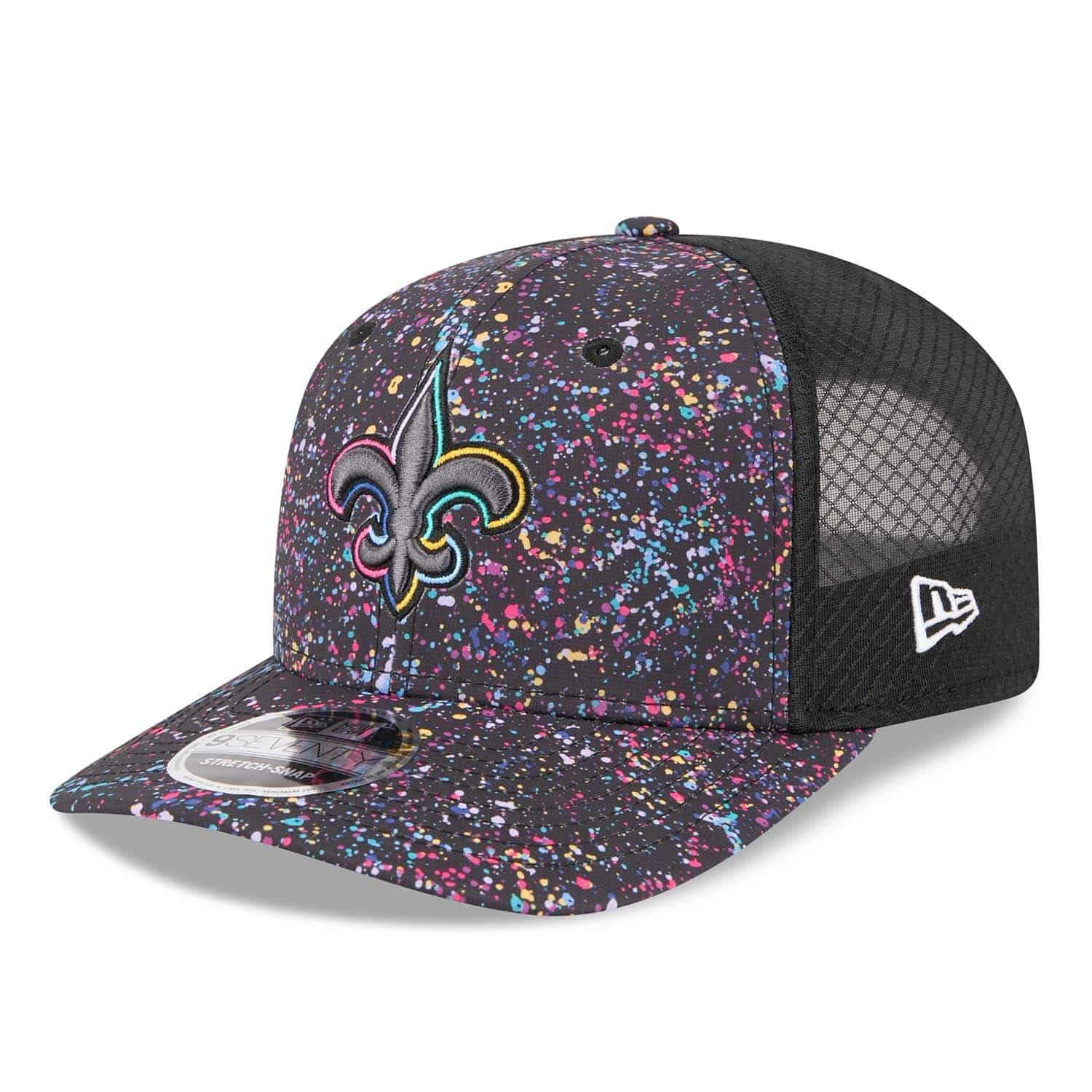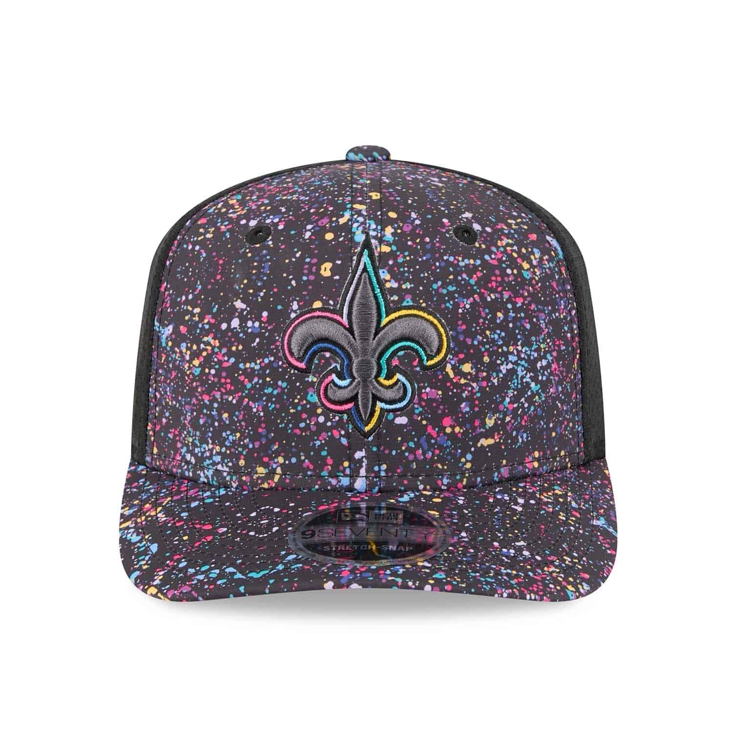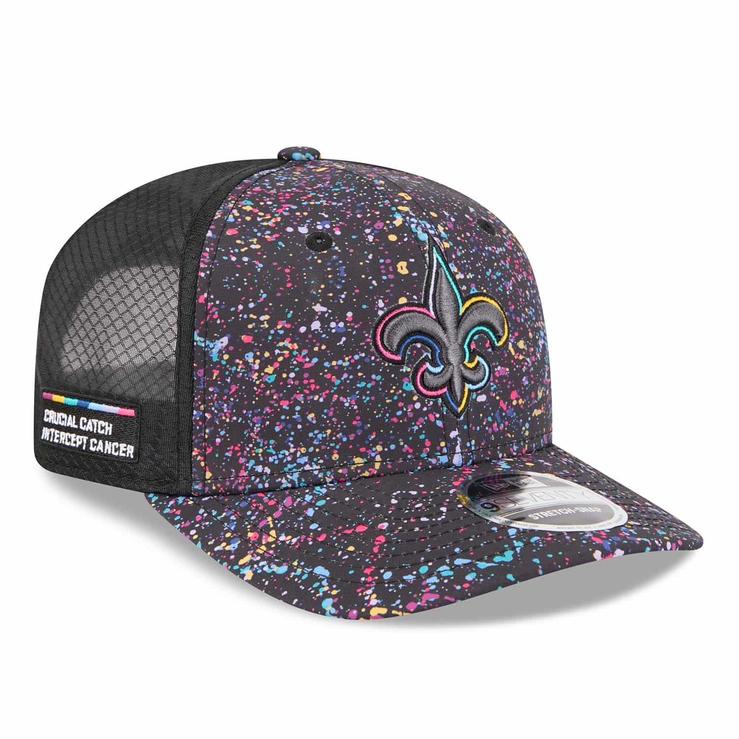 - Embroidered New Orleans Saints logo on the front in multicolor Crucial Catch style