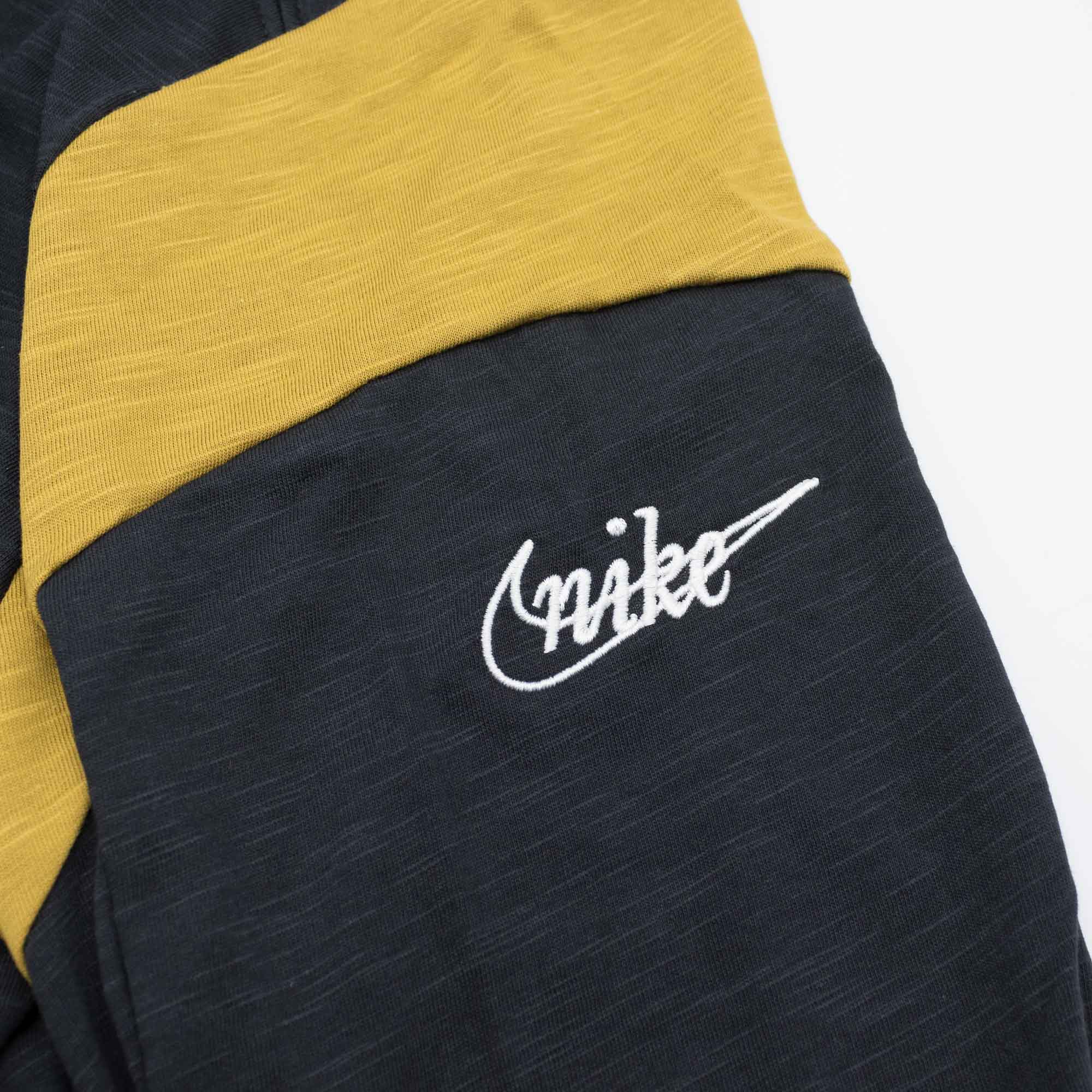 Throwback Football! Celebrate the good old times with the classic NFL look. This Nike long sleeve features classic distressed New Orleans Saints team decoration on front. With embroidered vintage Nike Swoosh on left sleeve and contrast color sleeve stripes. Nike Slub fabric and rib crew neck with interior taping for a comfortable wear.