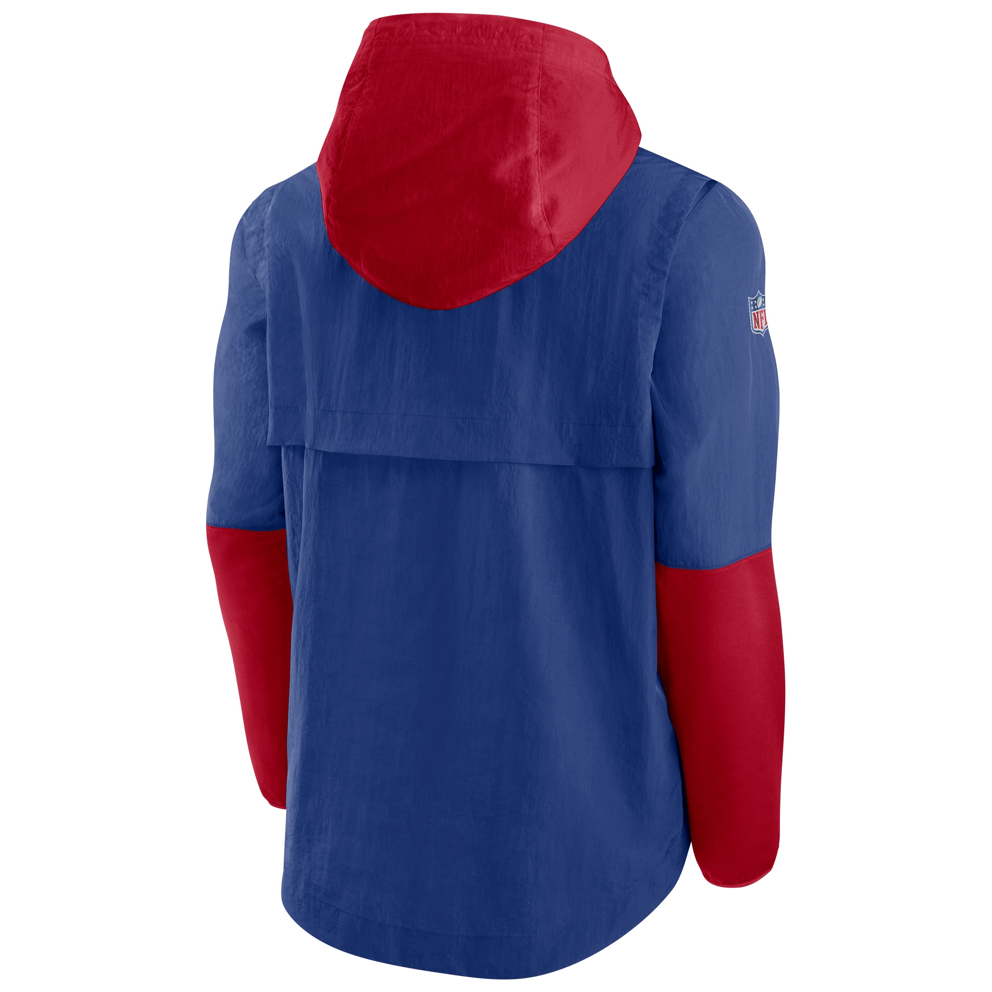 The Nike On-Field Sideline Player Jacket is built for the gridiron with its adjustable scuba hood and rounded drop-tail hem. It features a built-in back vent and fleece-lined forearms to help provide proper warmth and coverage without sacrificing breathability. Quarter-zip for easy temperature adjustment. New York Giants team logo at left chest. Nike Swoosh logo printed on the left sleeve and official NFL Sideline shield logo on right sleeve. Water repellent Nike Repel technology keeps you protected from the elements.