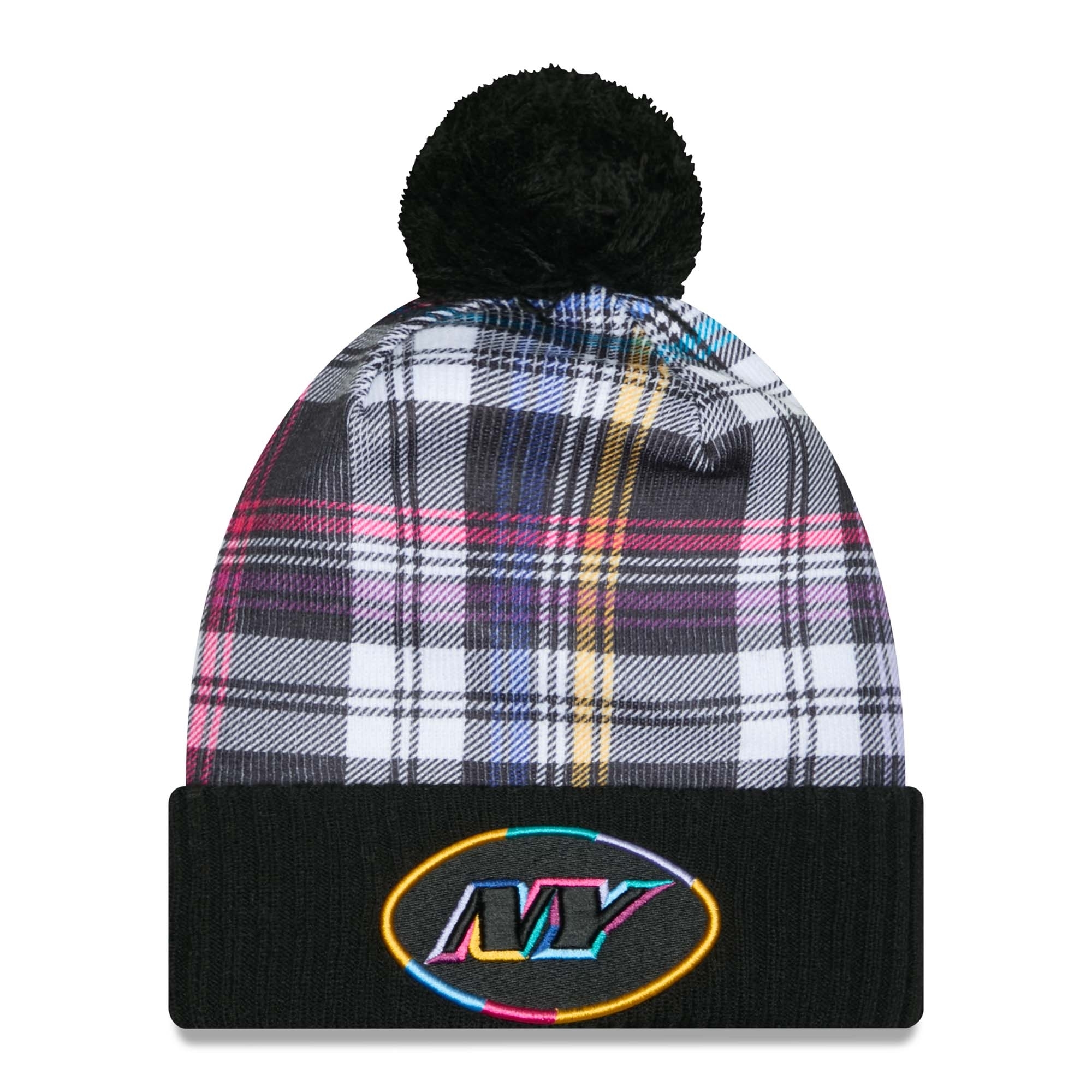 The beanie impresses with its high-quality design: an embroidered New York Jets team logo decorates the front cuff, while a Crucial Catch patch on the right side and an NFL Shield on the back add extra accents. The plaid crown gives the beanie a distinctive look, and the removable pom-pom detail completes the design.