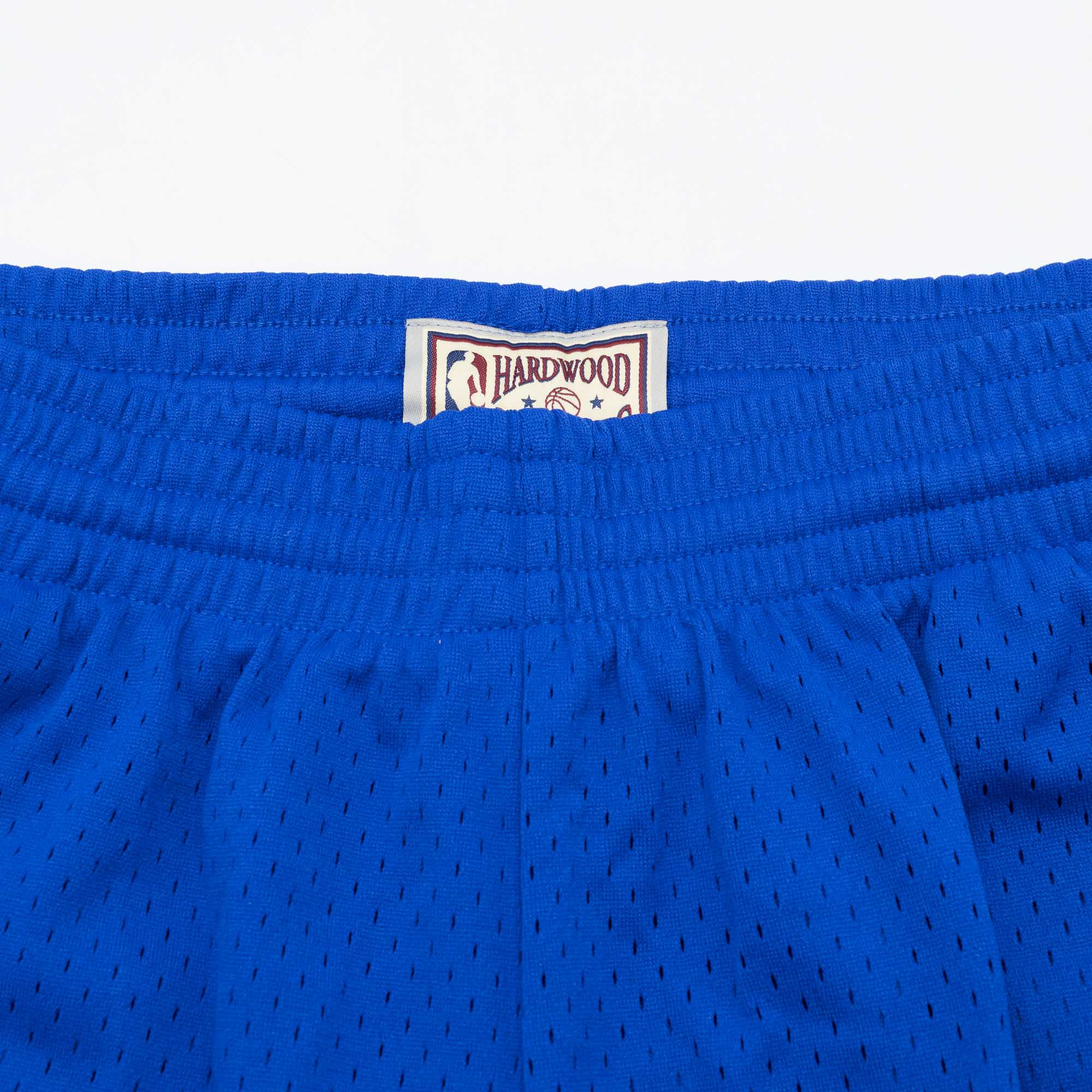 Celebrate the golden era of hoop uniforms with the Mitchell & Ness Swingman shorts. These basketball shorts feature 100% poly textured mesh, a knit rib waistband, heat seal screen printed twill logos, cotton drawstring and twill NBA logo.