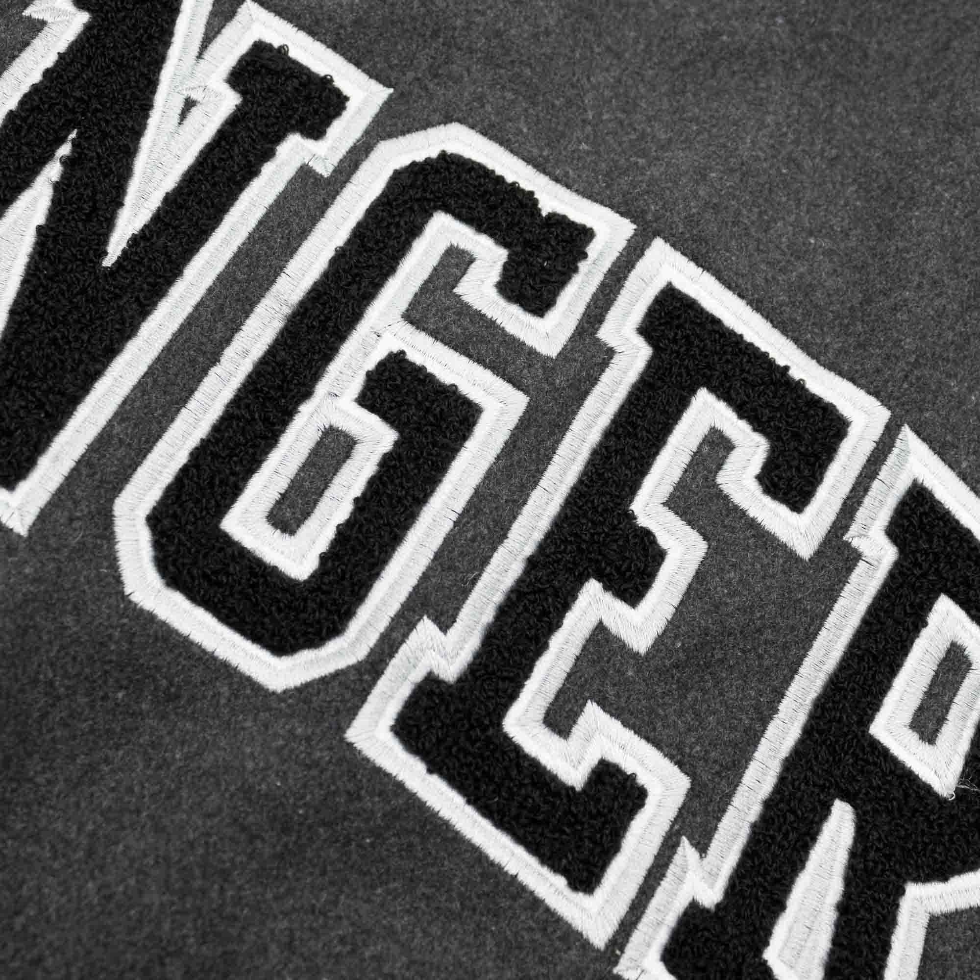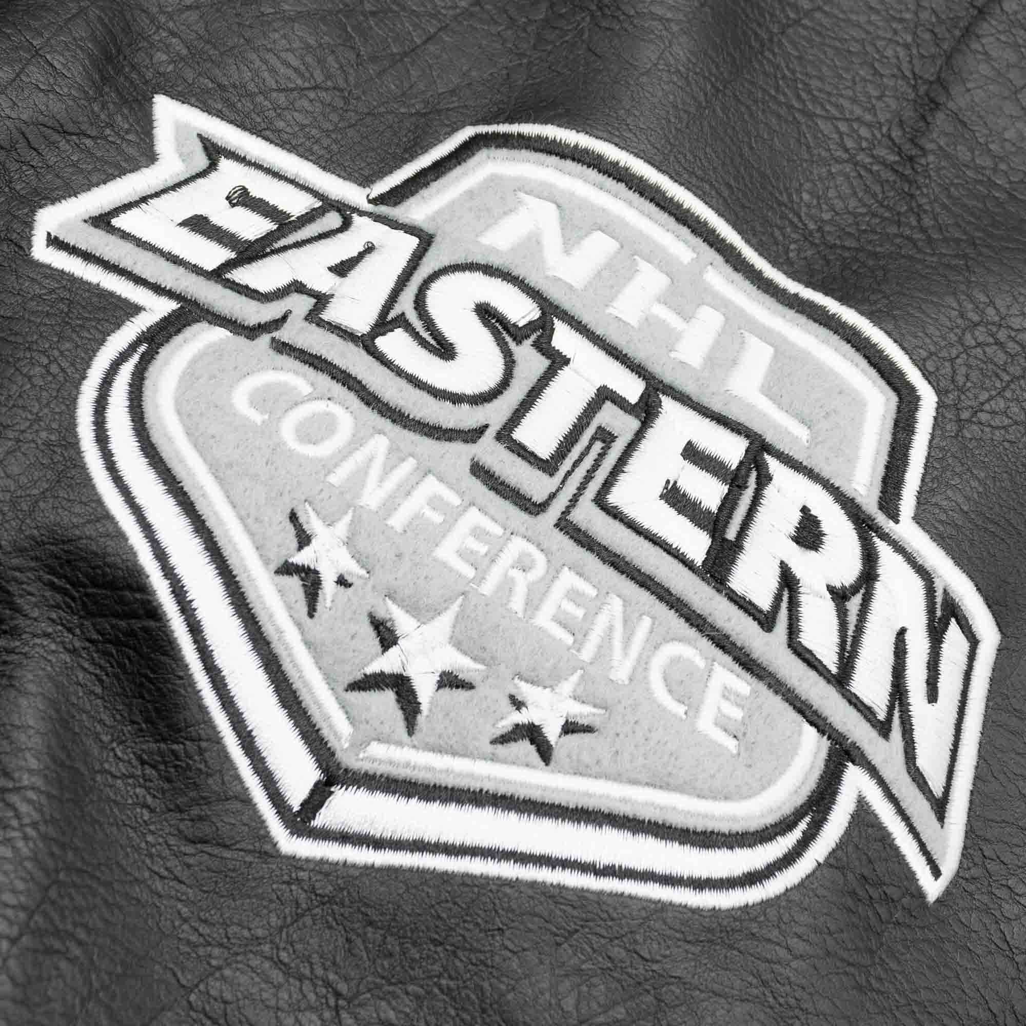 The high-quality Wool Varsity Jacket from Starter is something very special for every NHL fan. The black wool design with black faux leather sleeves is combined with a zip-button front. The heavy jacket only comes with high-quality embroidered team applications. The left chest is embroidered with the New York Rangers team logo in chenille style. The back is decorated with the large RANGERS Chenille wordmark. In addition, the right sleeve is also embroidered with the New York Rangers team logo. The lft sleeve features the conference logo.