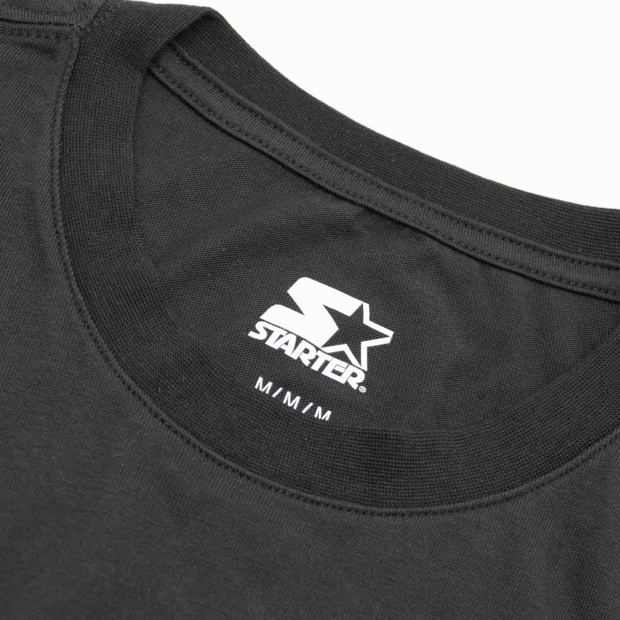 This Starter Premium t-shirt is of absolutely high quality and comes in an all-black design. Extra soft cotton-polyester fabrics ensure a comfortable fit. Starter styled New York Rangers hockey player print on front The legendary Starter look is rounded off with the embroidered star logo on the left sleeve hem and the sewn-on Starter Authentic label on the front hem.