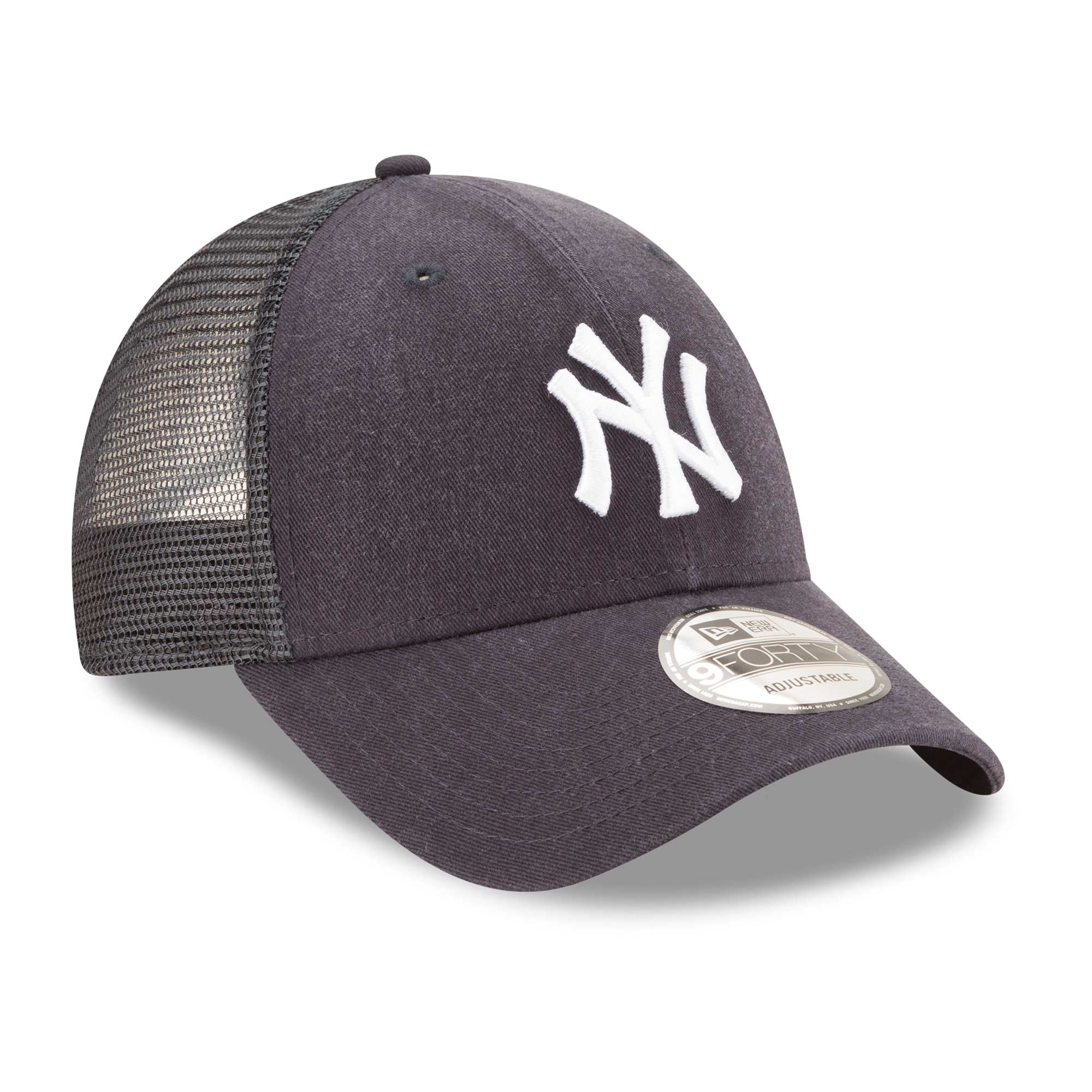 This official MLB Trucker is part of the New Era Basics Collection. Cotton front embroidered with (raised) New York Yankees team logo. Fully adjustable snapback closure. Small team label on back closure.