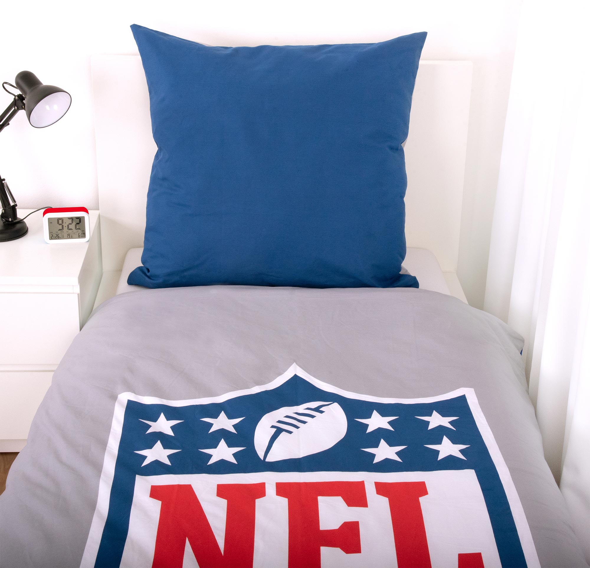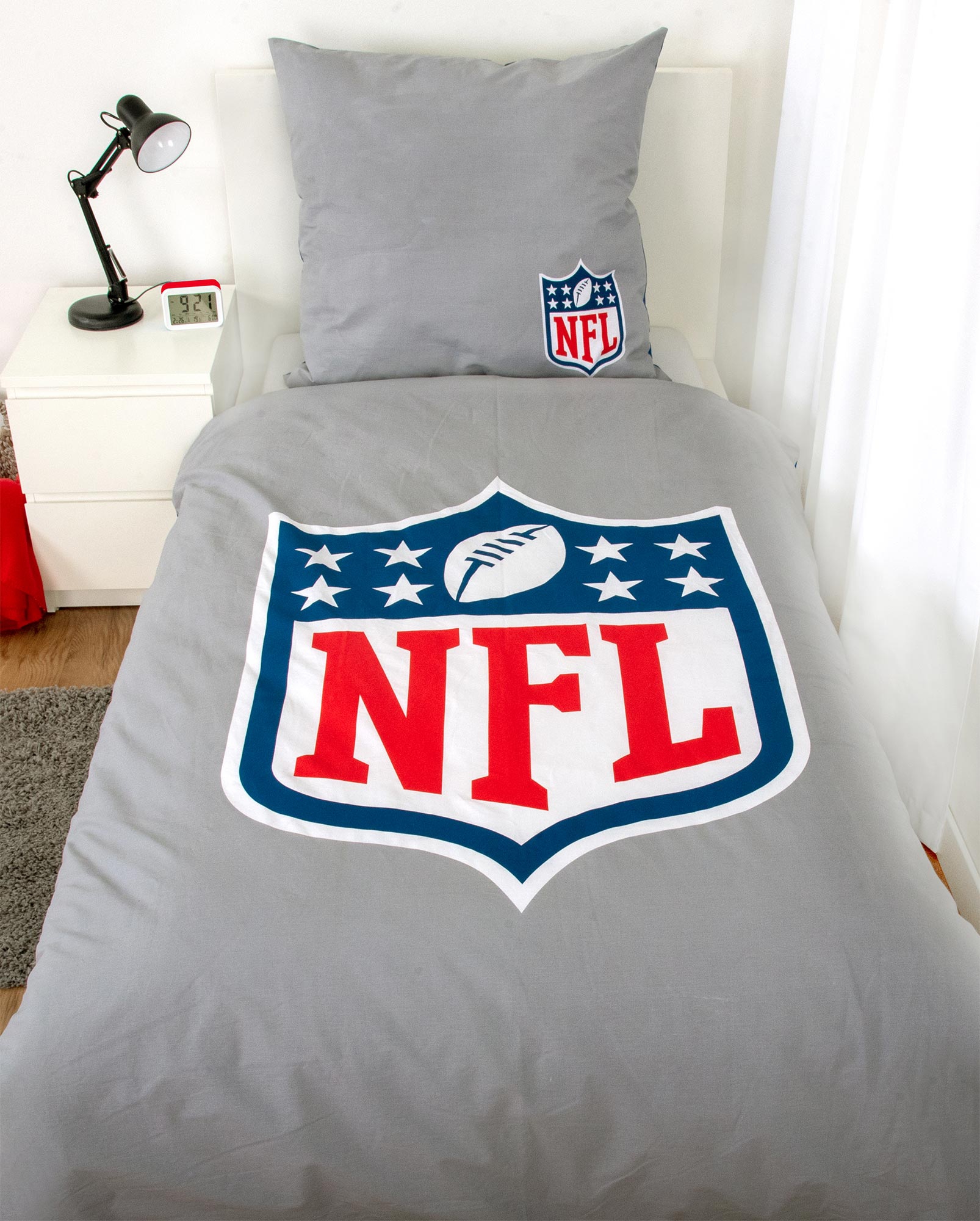 If your goal is to score some shut eye at home and stay warm and cozy, this NFL Shield bedding set has all your needs covered. The pillow cover is 80 cm x 80 cm, and the duvet is 135 cm x 200 cm. Crafted from 100% cotton for comfort, it's decorated with a reversible design to show off your football loyalty.