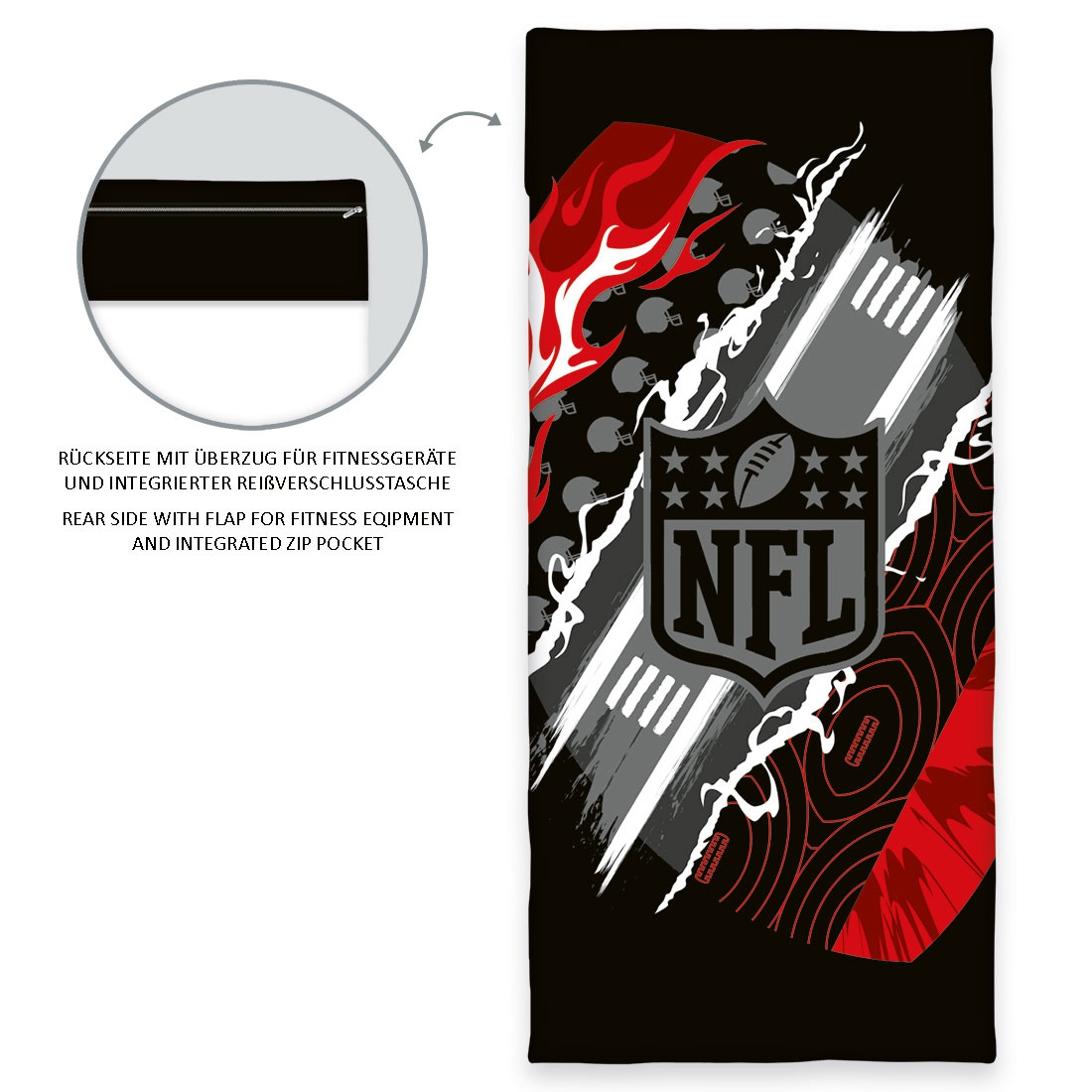 This fitness and sports towel features official NFL graphics.
