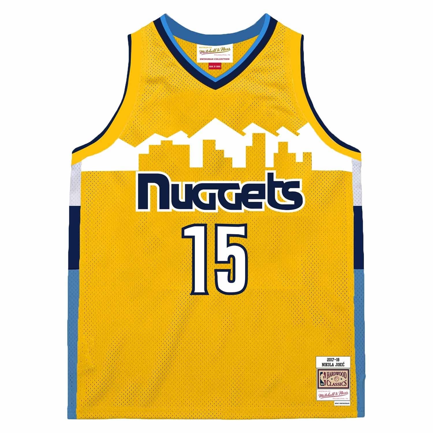 - Official Swingman NBA Jersey in the stylish yellow Nuggets design, worn by Nikola Jokiæ (#15) during the 2017 NBA season.