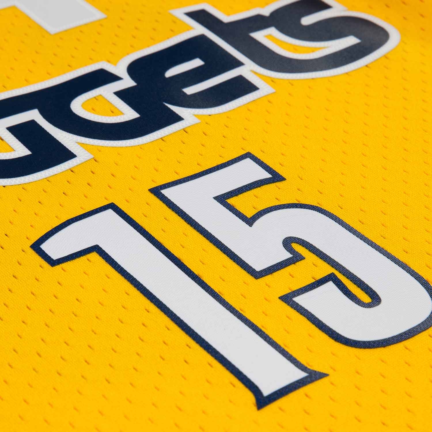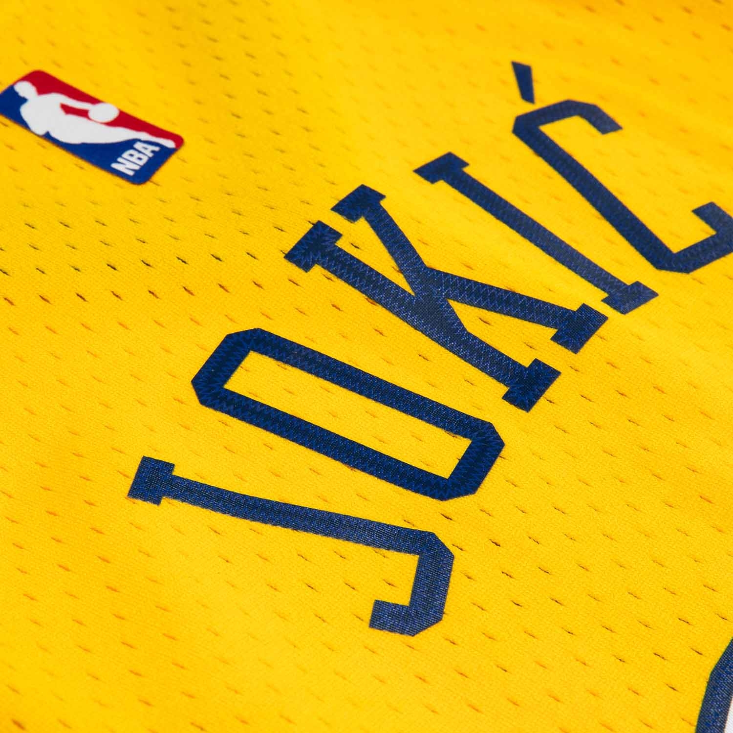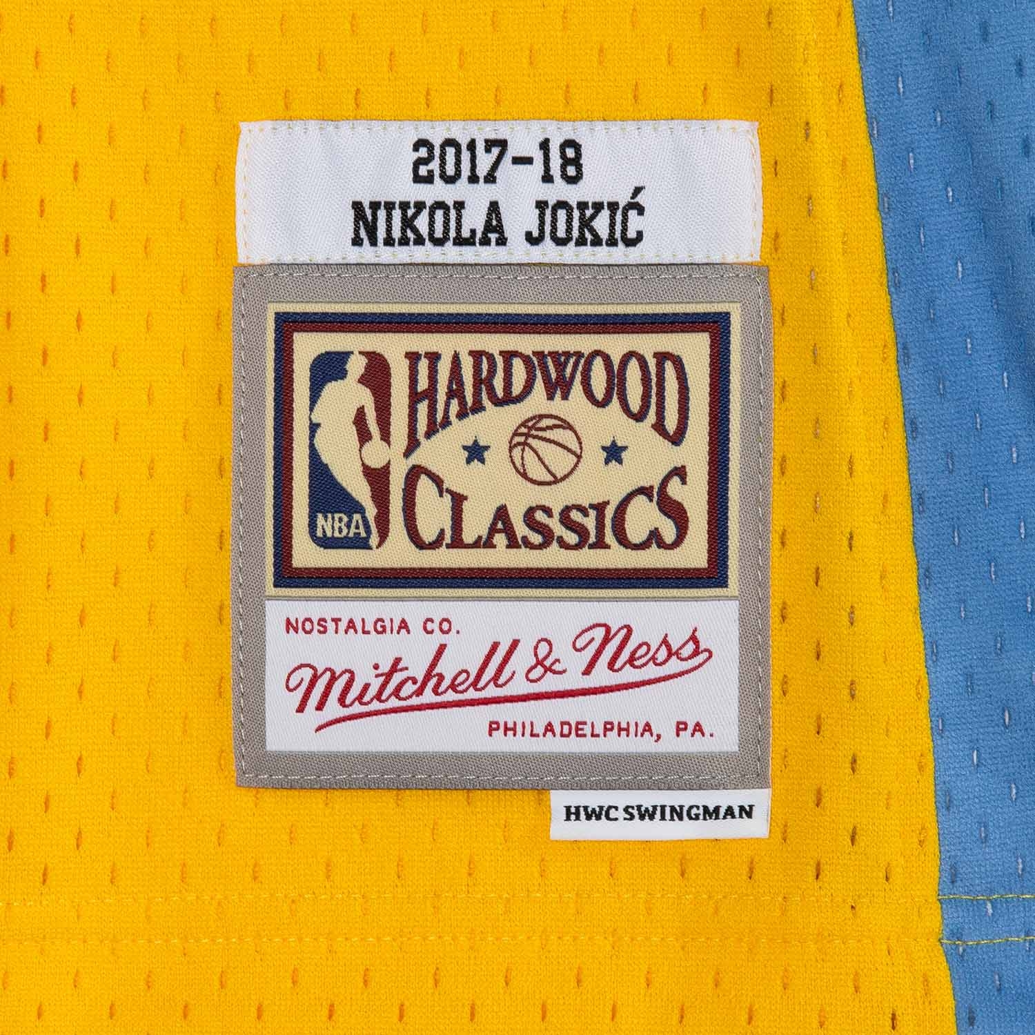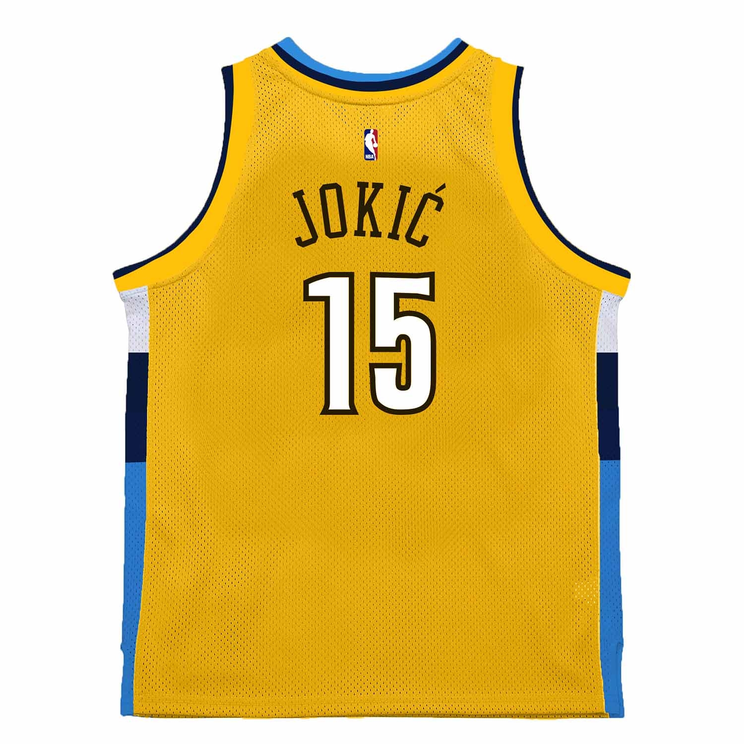 - Official Swingman NBA Jersey in the stylish yellow Nuggets design, worn by Nikola Jokić (#15) during the 2017 NBA season.