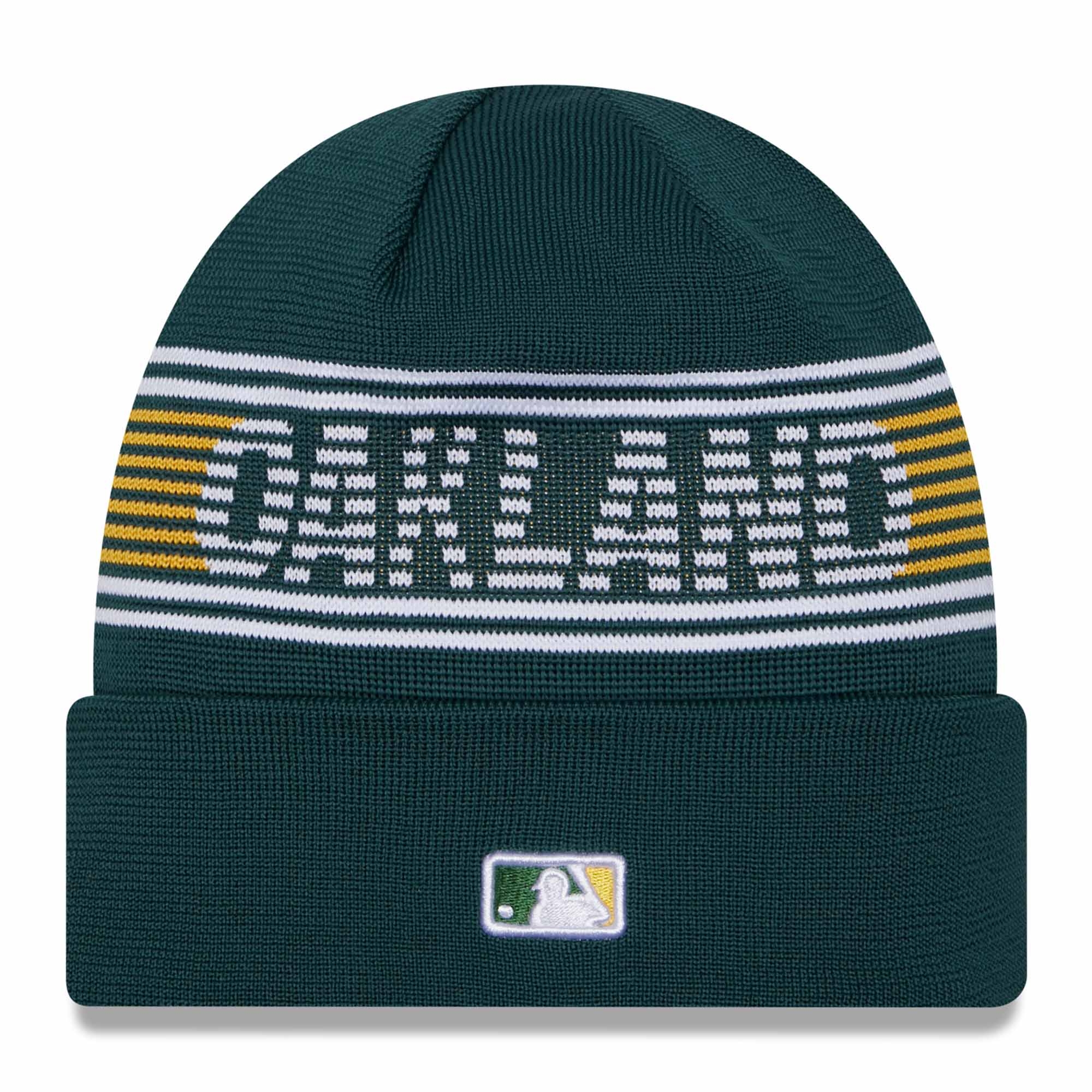 New Era Baseball 2024 MLB Clubhouse Collection Beanie Knit Hat from your Oakland Athletics.