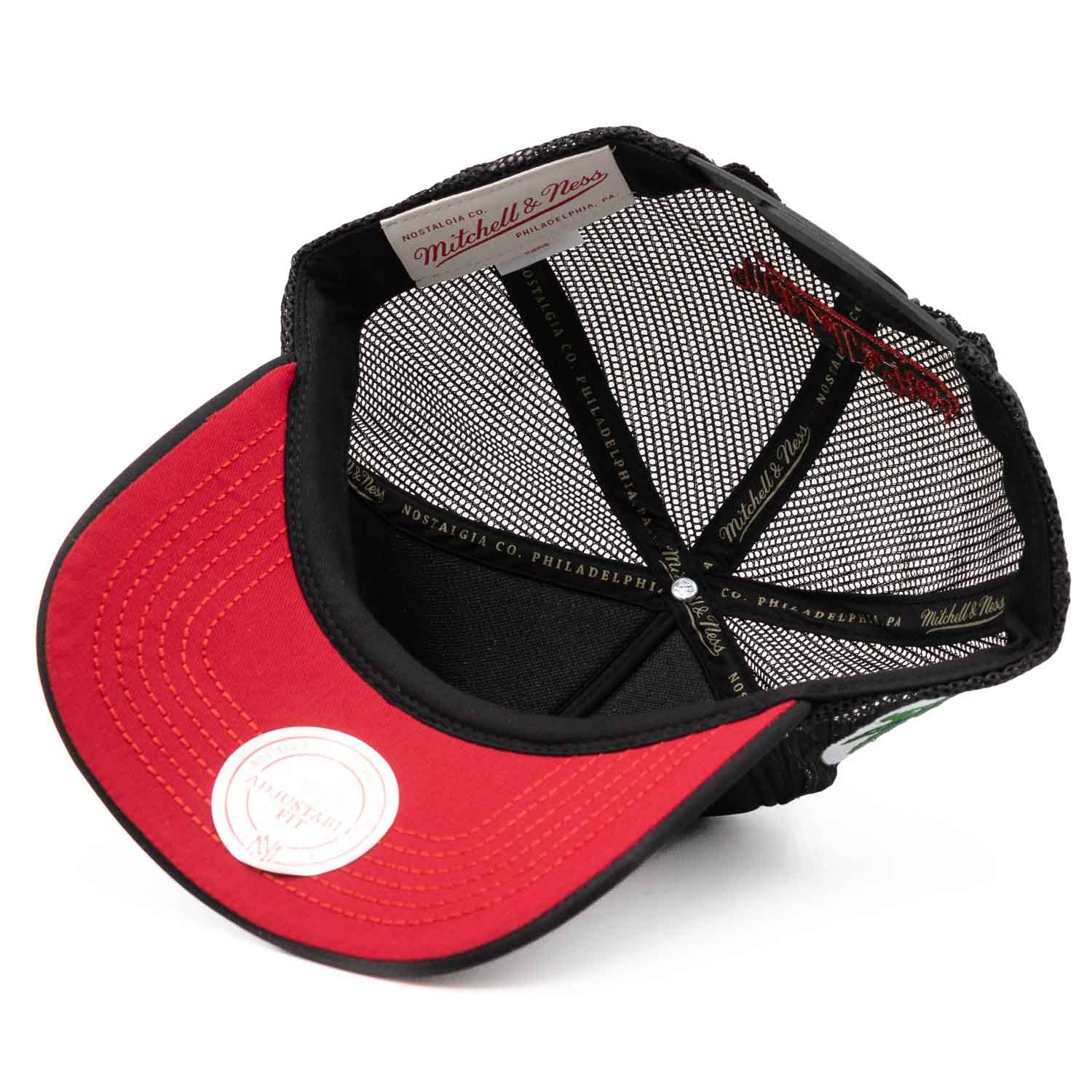 Mitchell & Ness Adjustable Fit Trucker Snapback with a curved visor and a high, structured crown. The trucker mesh back provides increased breathability, while the inner sweatband enhances comfort.