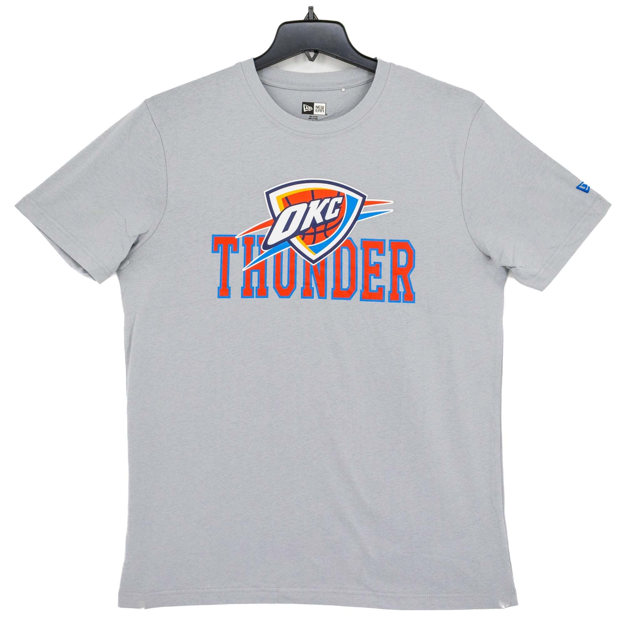 New Era Men's Basketball Tee from the Oklahoma City Thunder with team logo print on front. Features : High quality basketball tee featuring OKC team logo and jersey styled THUNDER wording on center front....