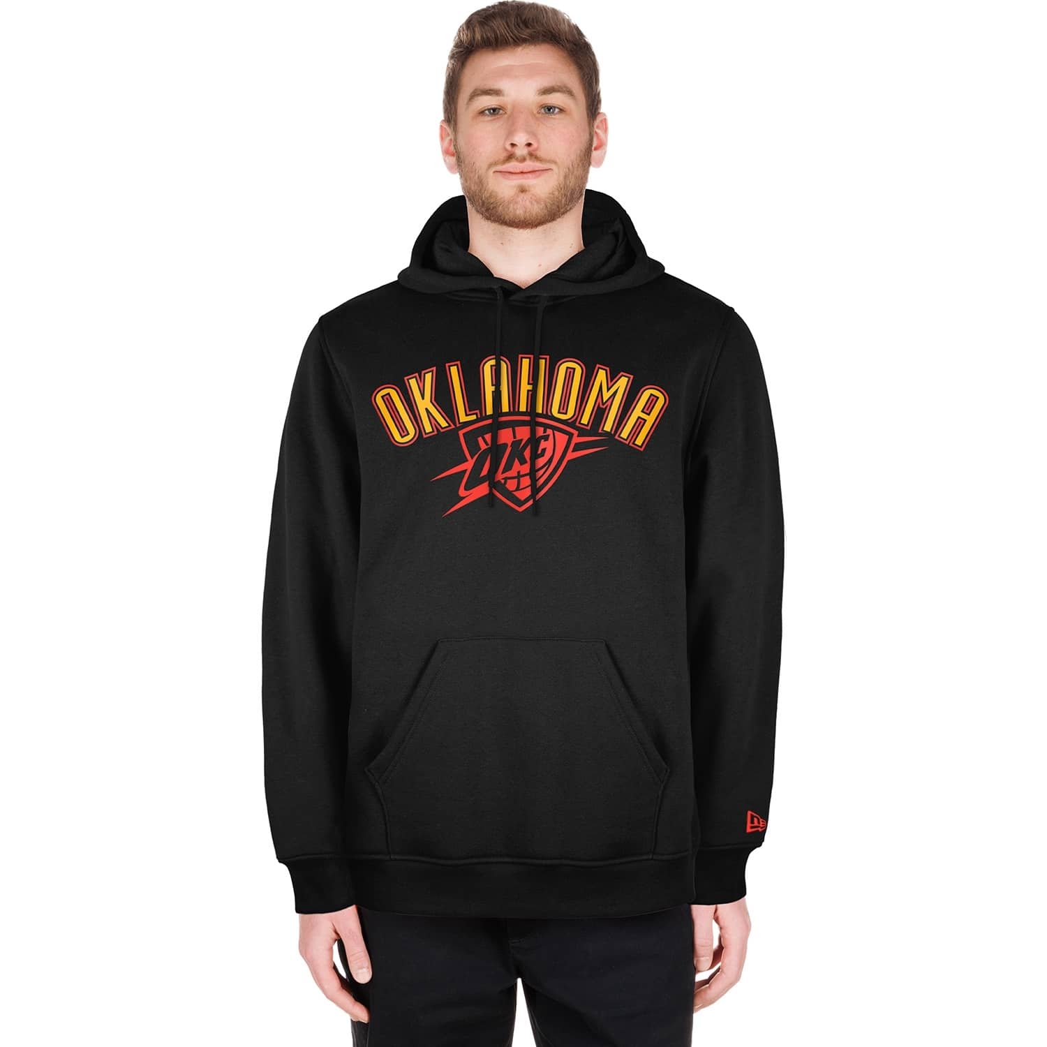 New Era Men's NBA Team Logo Basketball Hooded Sweatshirt with Oklahoma City Thunder decoration. Features : Premium Pull-over long sleeve hooded sweatshirt by New Era. Screenprinted OKC Thunder team logo...