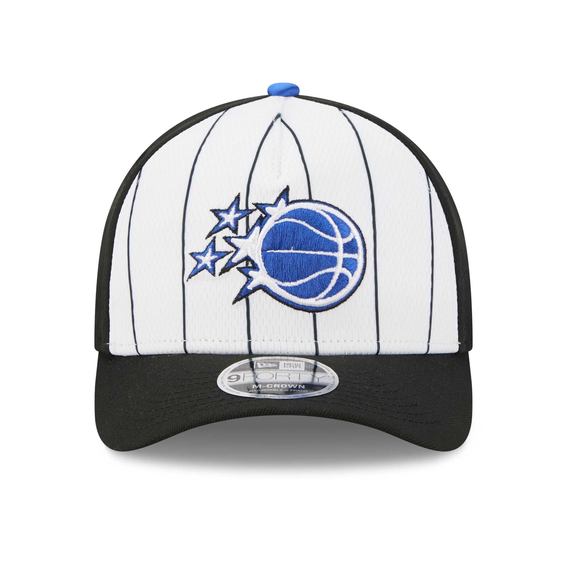 Kick off the new NBA season with authentic Orlando Magic style at the official tip-off. This New Era 9FORTY M-Crown A-Frame cap blends classic team DNA with modern details and a sleek, sporty silhouette. The striking front design with pinstripe detailing and an embroidered Orlando Magic logo delivers a clean, premium look-perfect for game days, everyday wear, and streetwear.