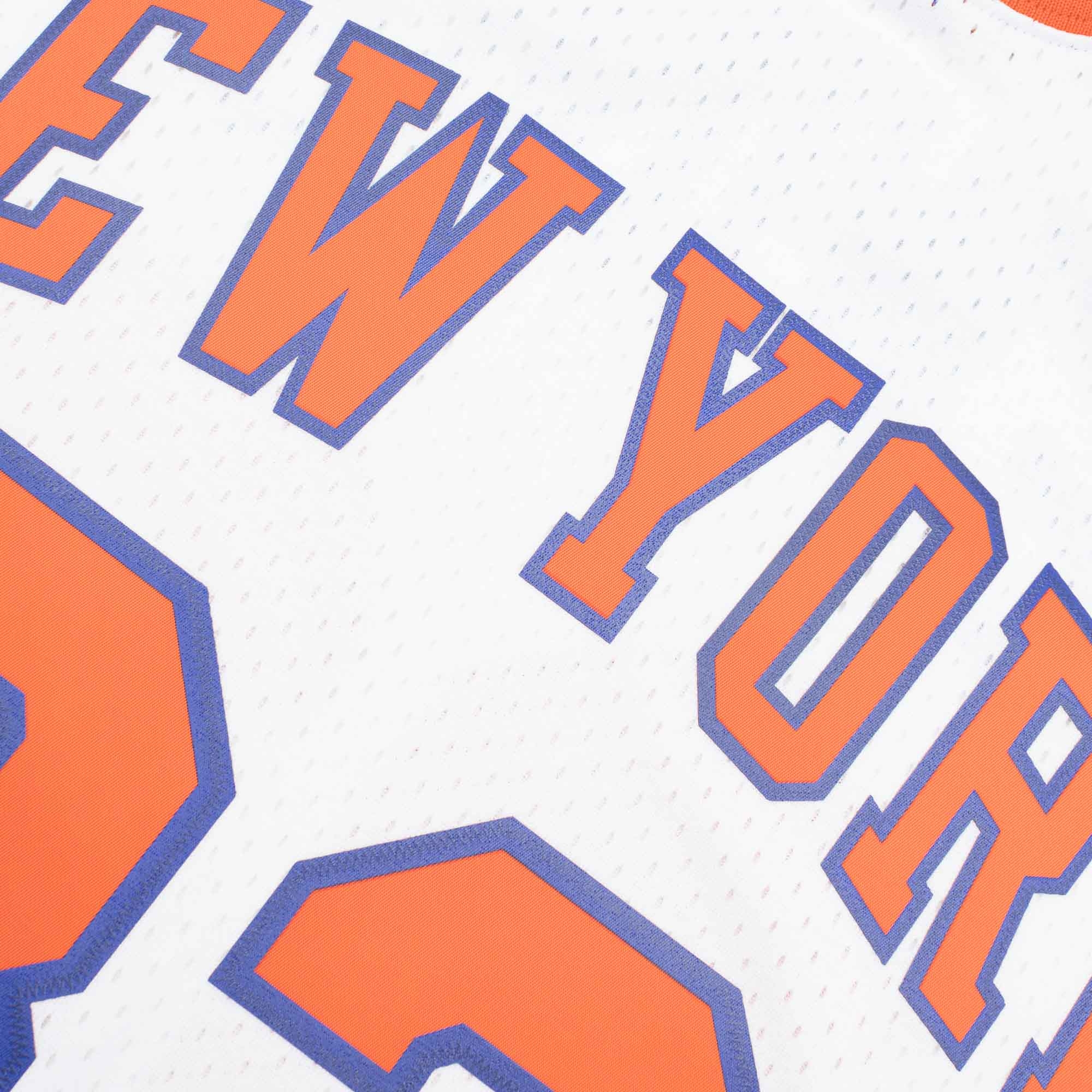 Rep your favorite team and player anytime in the NBA Swingman Hardwood Classics Jersey, replicating what the New York Knicks have worn on the court during that era. With heat seal screen printed twill logo, name and number applications. The body is made from 100% polyester mesh. Woven Hardwood Classics-Mitchell & Ness jocktag at front lower left.