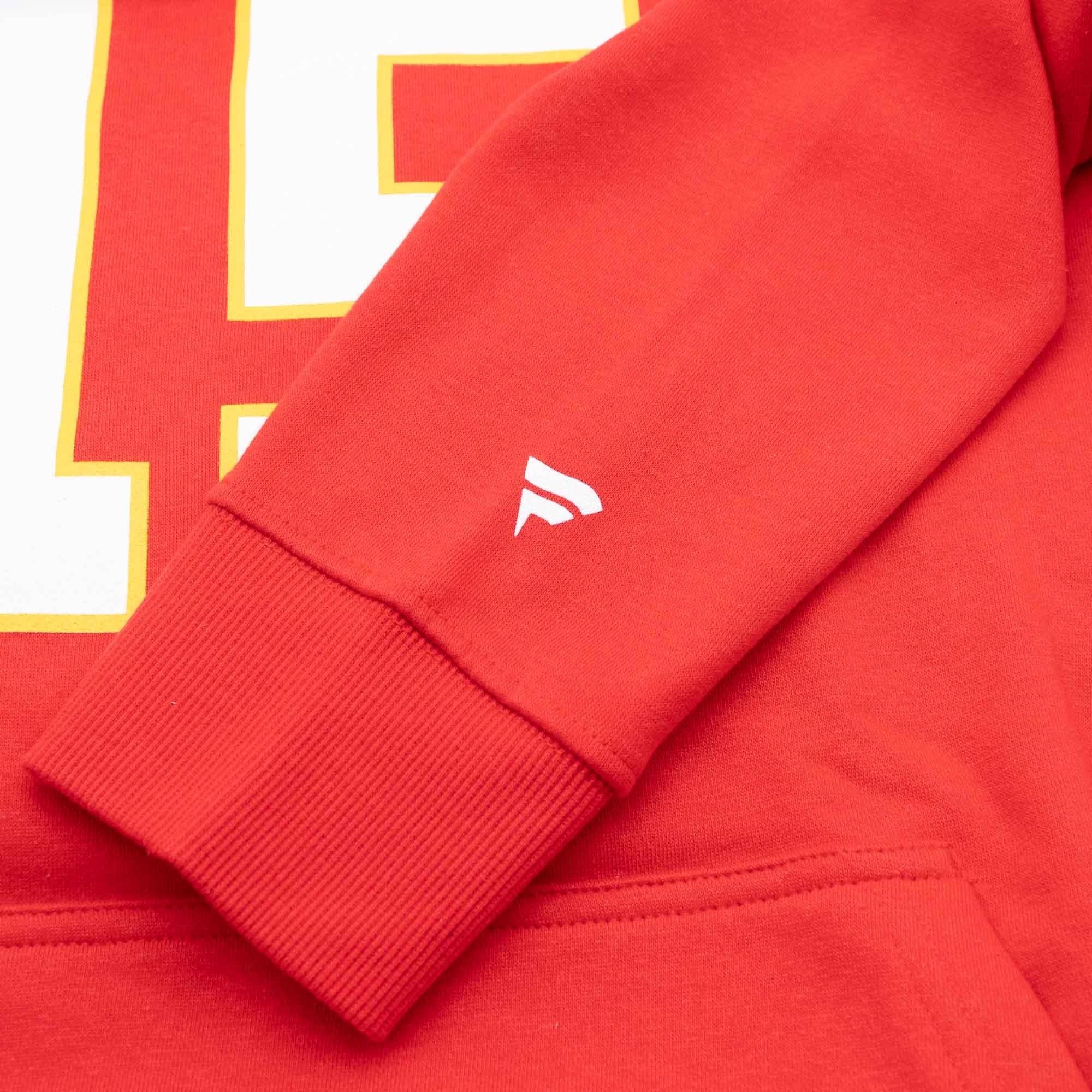 The authentic print of the numbers and letters gives the hoodie a genuine NFL jersey look. As a special detail, the CHIEFS wordmark is printed above the number on the front. Made from a cotton-polyester blend, the hoodie offers high comfort with a kangaroo pocket, hood, and drawstring.
