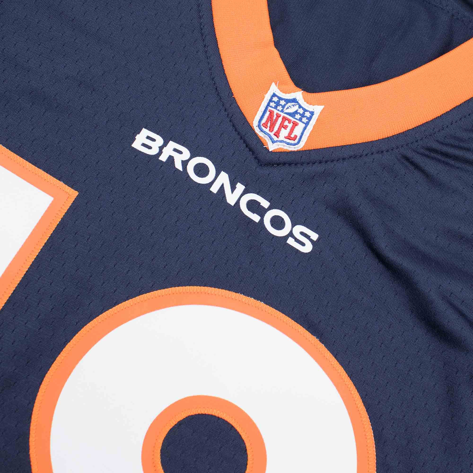 Rep your favorite team and player anytime in the NFL Throwback Jersey, inspired by what the Denver Broncos have worn on the field and designed for total comfort. High quality stitched letters and numbers, strategic ventilation for breathability, body made from 100% polyester, woven NFL-Mitchell & Ness tag (Legacy Collection) at front lower left.