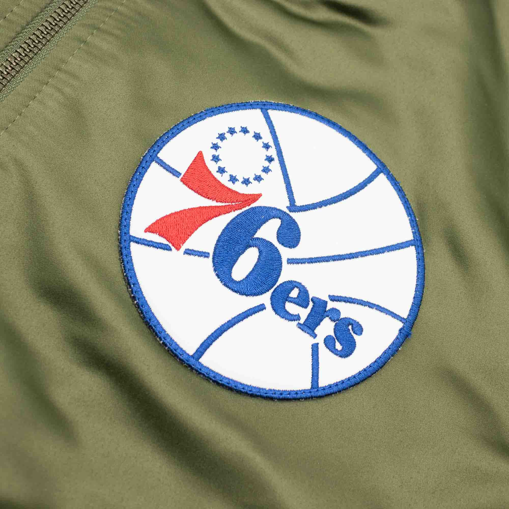 Philadelphia 76ers Olive Mitchell & Ness Heavyweight Satin NBA Jacket