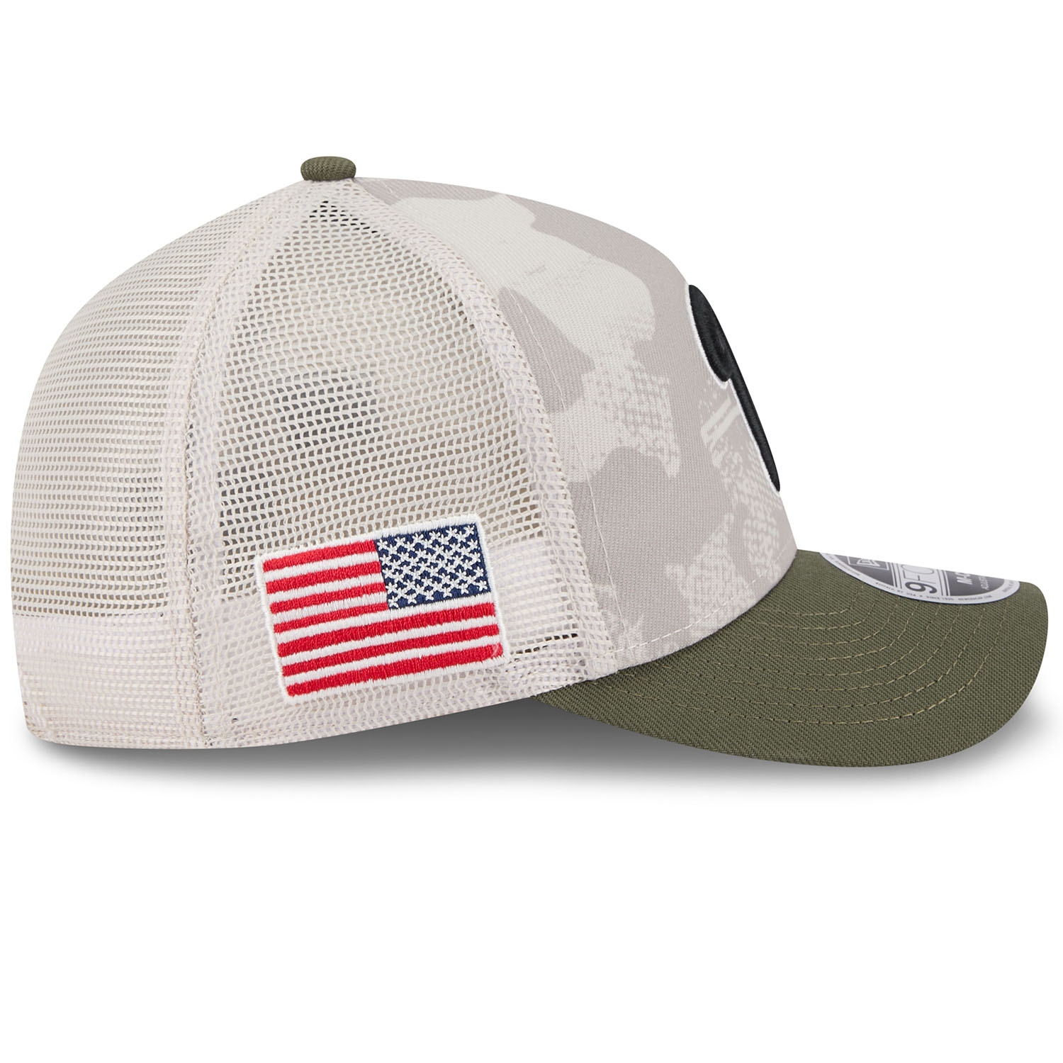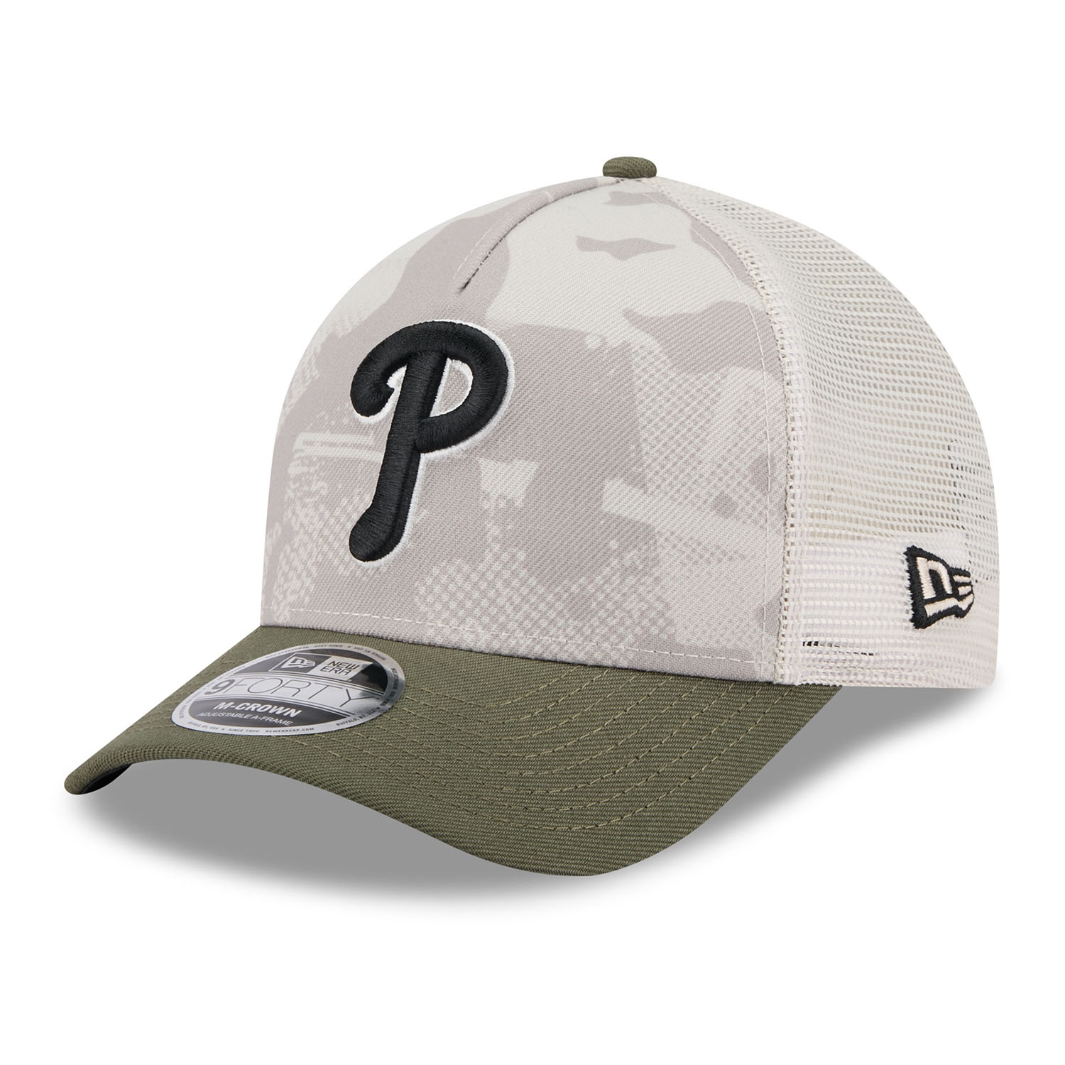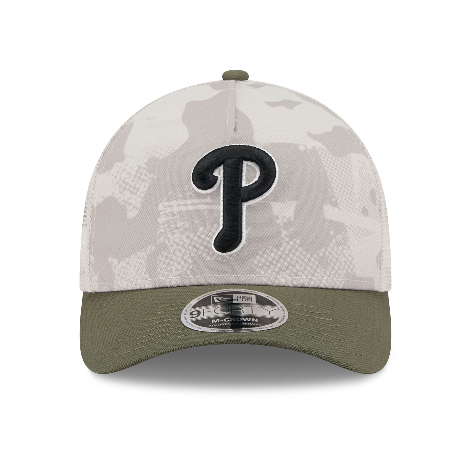 New Era Official 2025 MLB Armed Forces Day Campaign 9FORTY M-Crown A-Frame Snapback Trucker Hat from your Philadelphia Phillies.