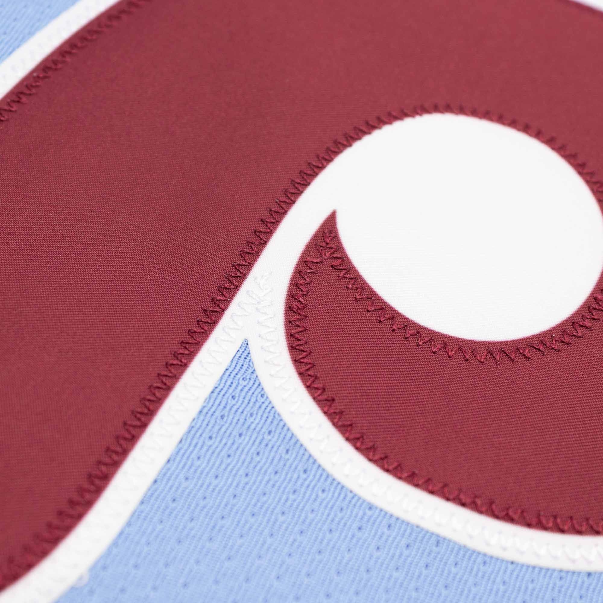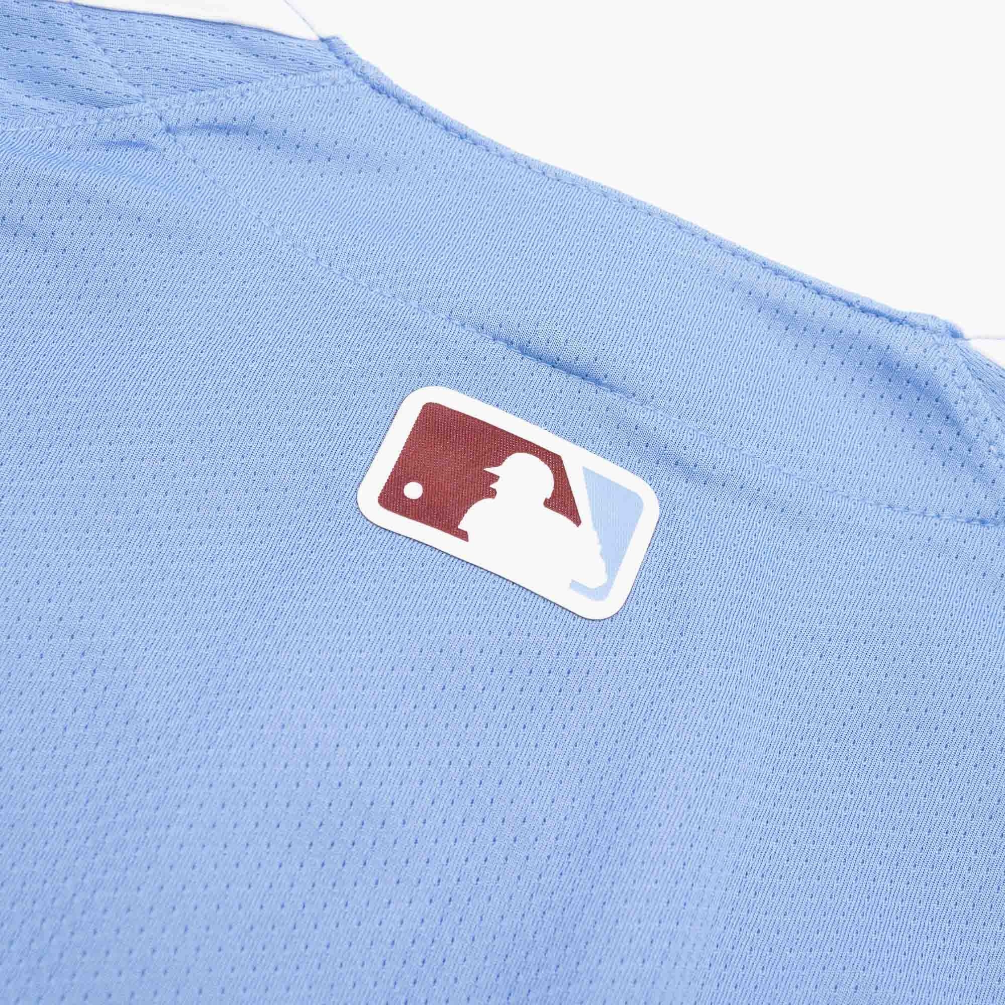 Inspired by the on-field uniforms of your favorite MLB squad, this Philadelphia Phillies jersey delivers an authentic look with twill details. The sweat-wicking, double-knit mesh fabric helps provide a breathable, comfortable feel on game day. Official heat-sealed twill Philadelphia Phillies logo with zigzag stitching on front. Embroidered Nike Swoosh logo. Heat-applied woven MLB Batterman on back and Nike jock tag at front hem.