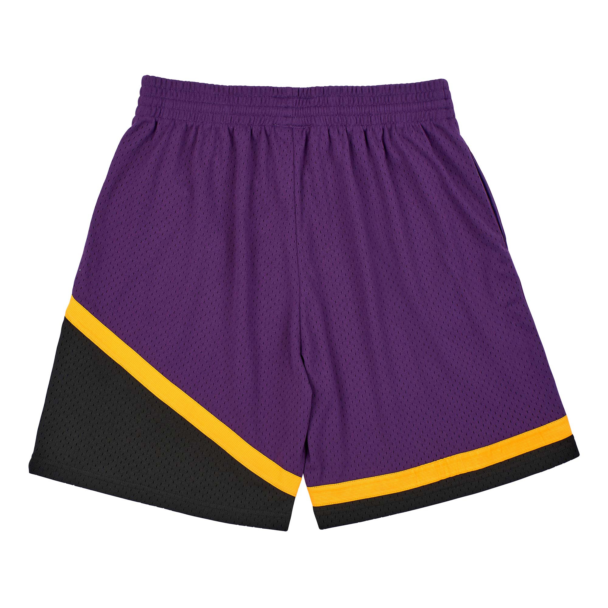 Celebrate the golden era of hoop uniforms with the Mitchell & Ness Swingman shorts. These basketball shorts feature 100% poly textured mesh, a knit rib waistband, heat seal screen printed twill logos, cotton drawstring and twill NBA logo.