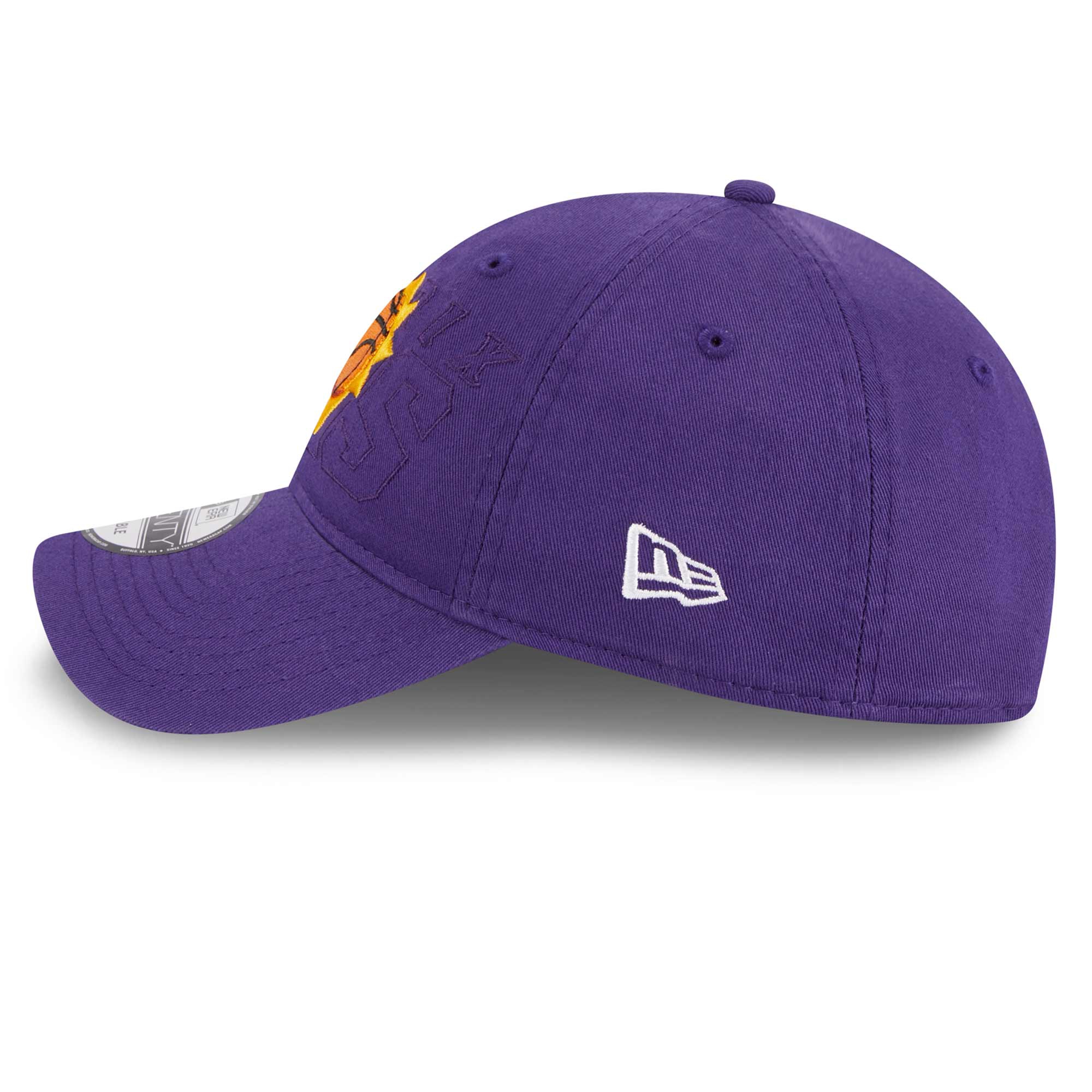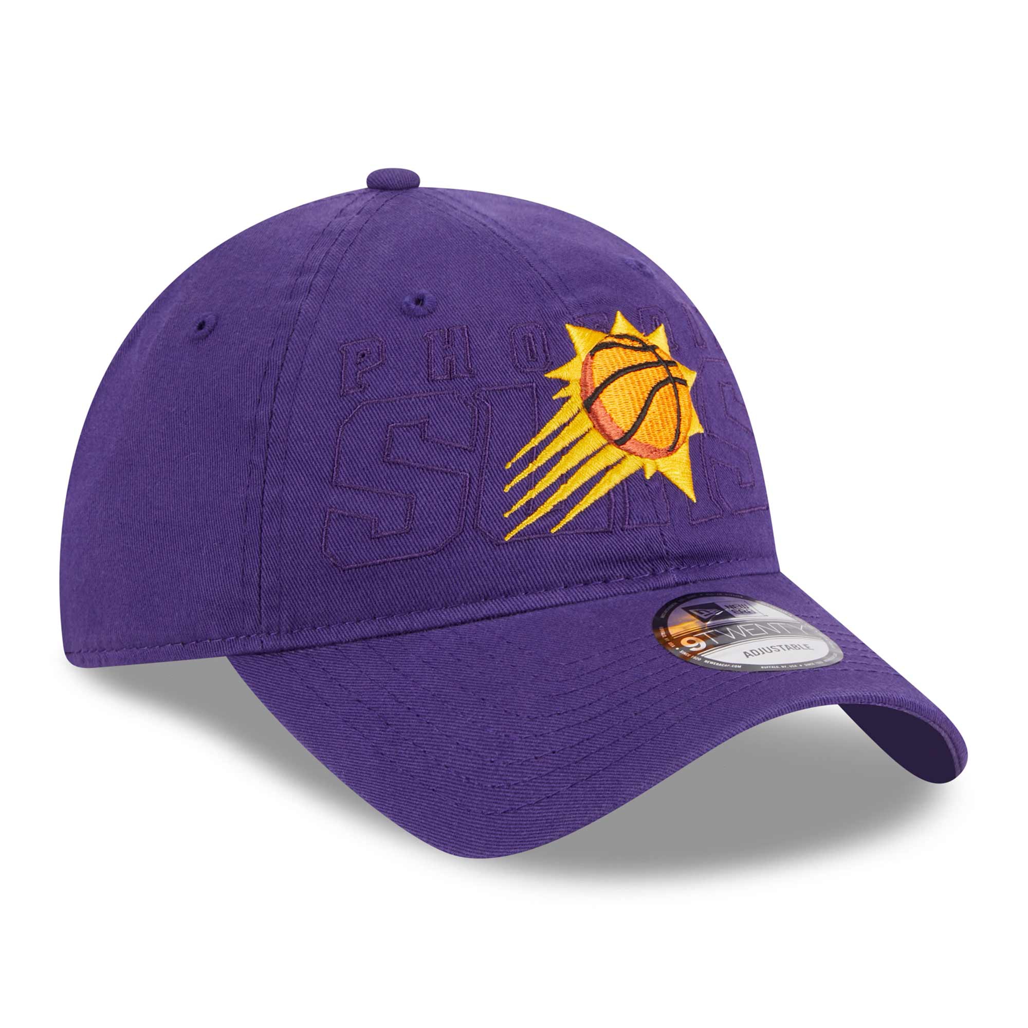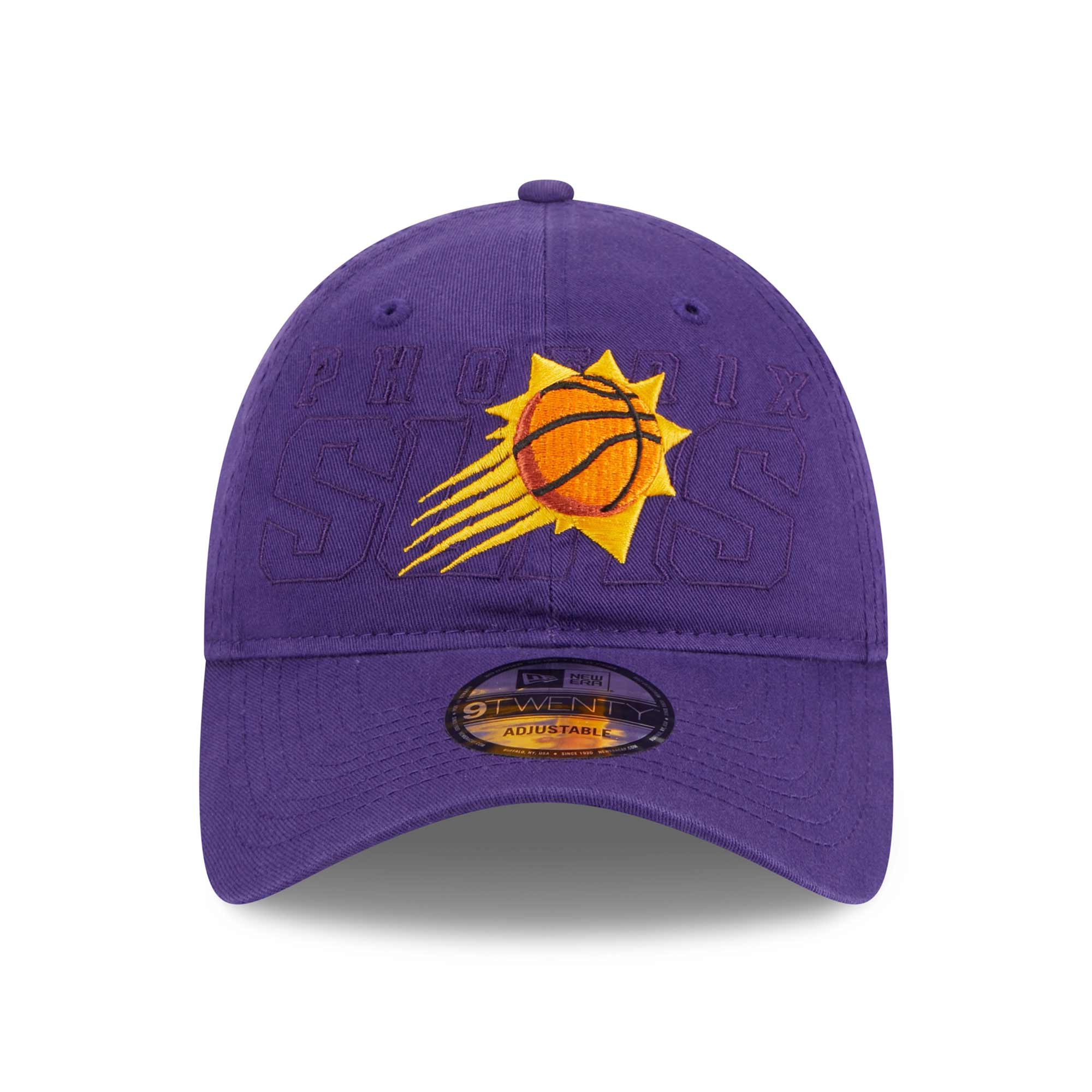 This New Era 2023 NBA Draft Collection adjustable hat features Phoenix Suns team logo against the background of the team wordmark on front. Small NBA logo label on back closure. Official team color design.