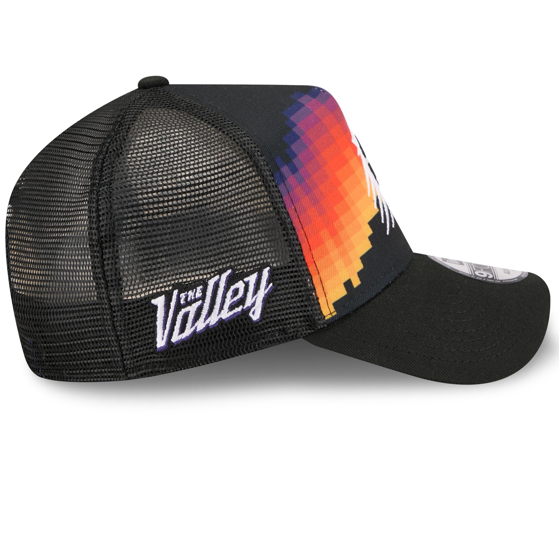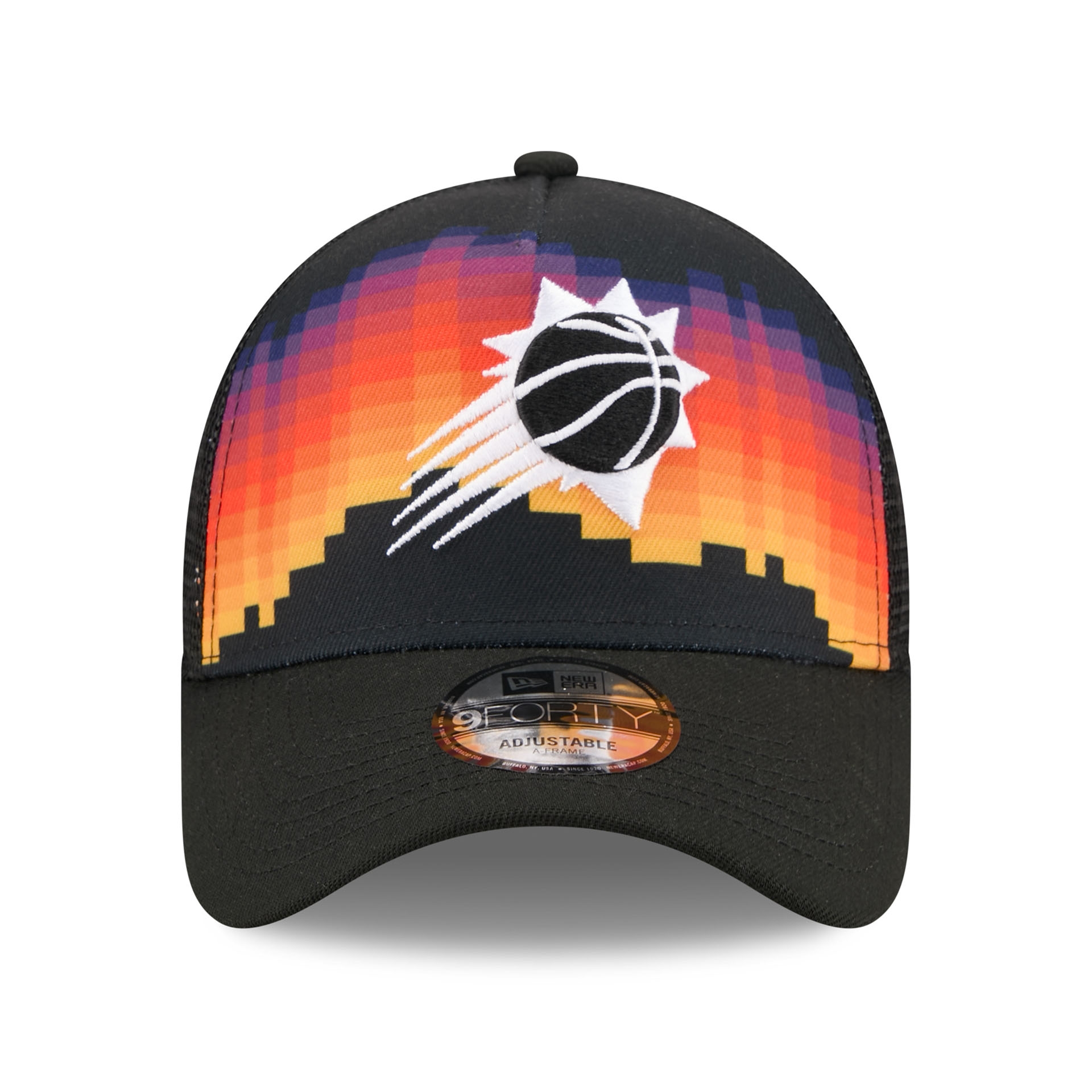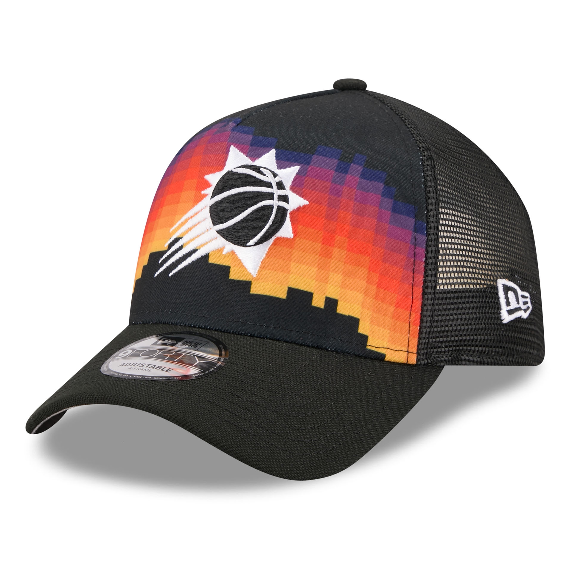 New Era 2025/26 NBA City Edition 9FORTY A-Frame Adjustable Snapback Trucker Hat from your Phoenix Suns.