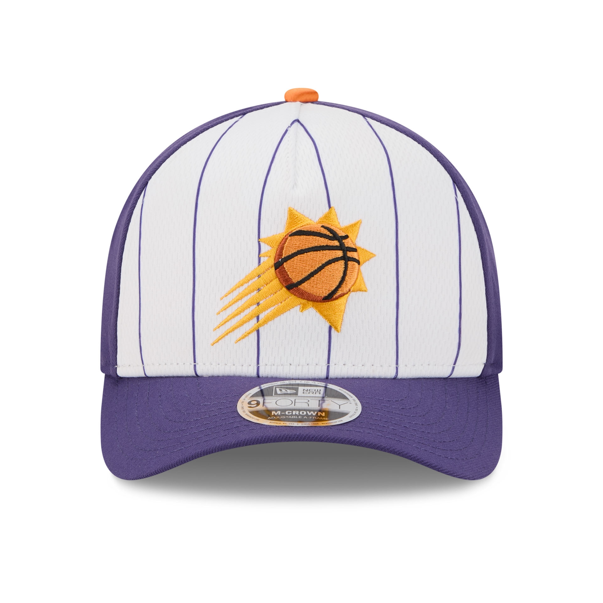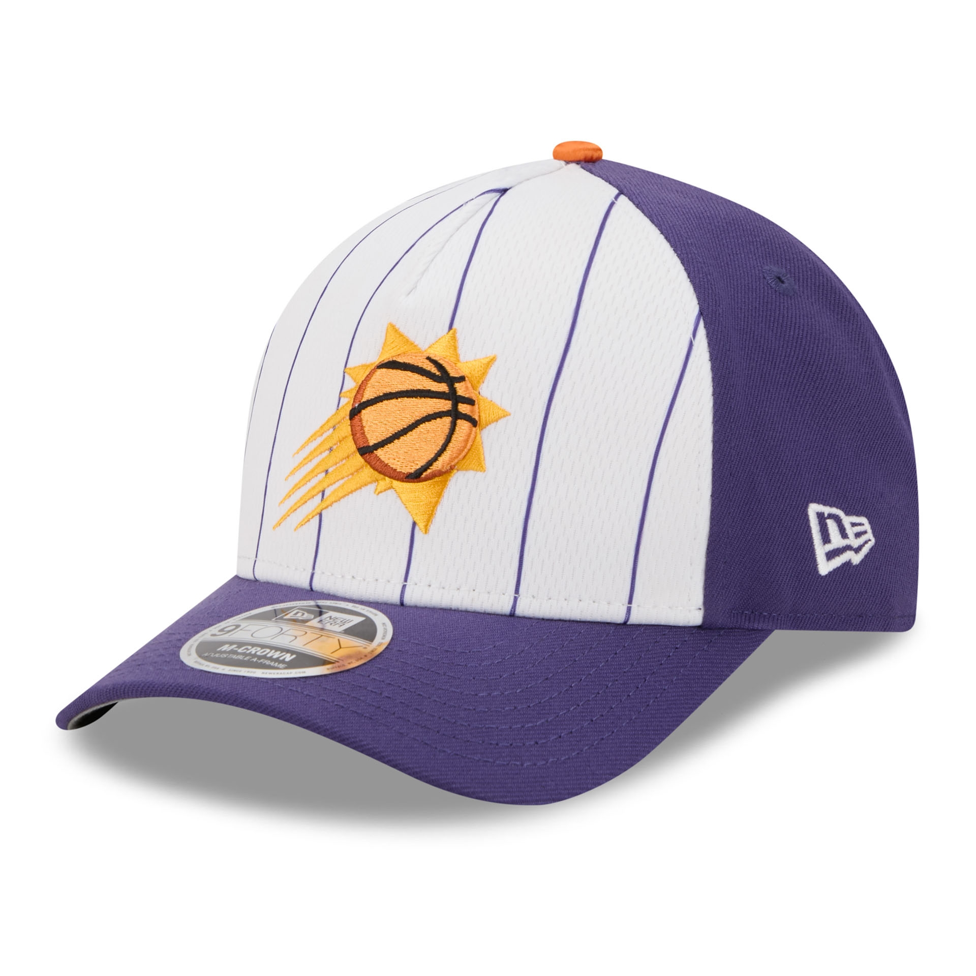 Kick off the new NBA season with authentic Phoenix Suns style at the official tip-off. This New Era 9FORTY M-Crown A-Frame cap blends classic team DNA with modern details and a sleek, sporty silhouette. The striking front design with pinstripe detailing and an embroidered Phoenix Suns logo delivers a clean, premium look-perfect for game days, everyday wear, and streetwear.