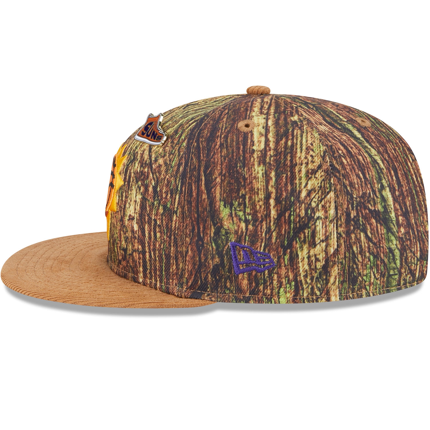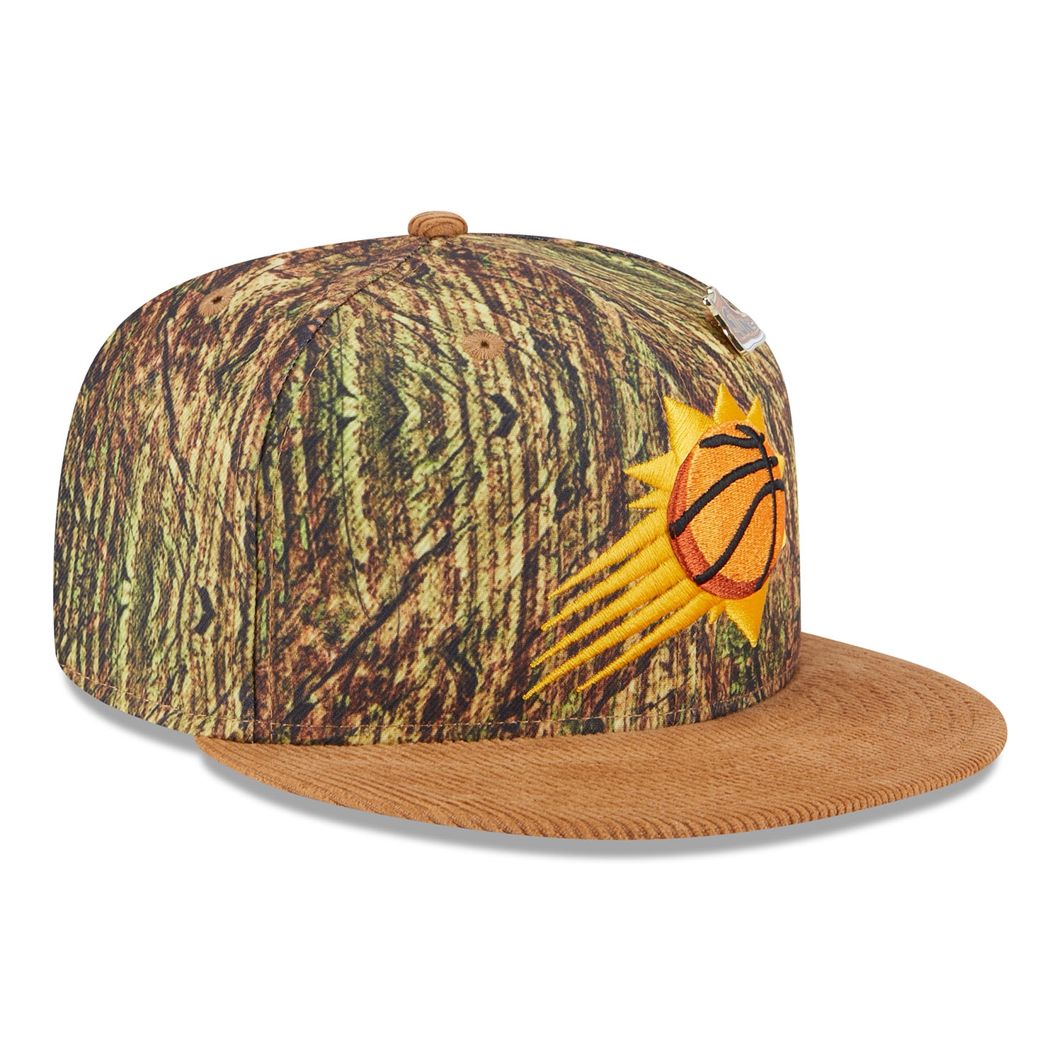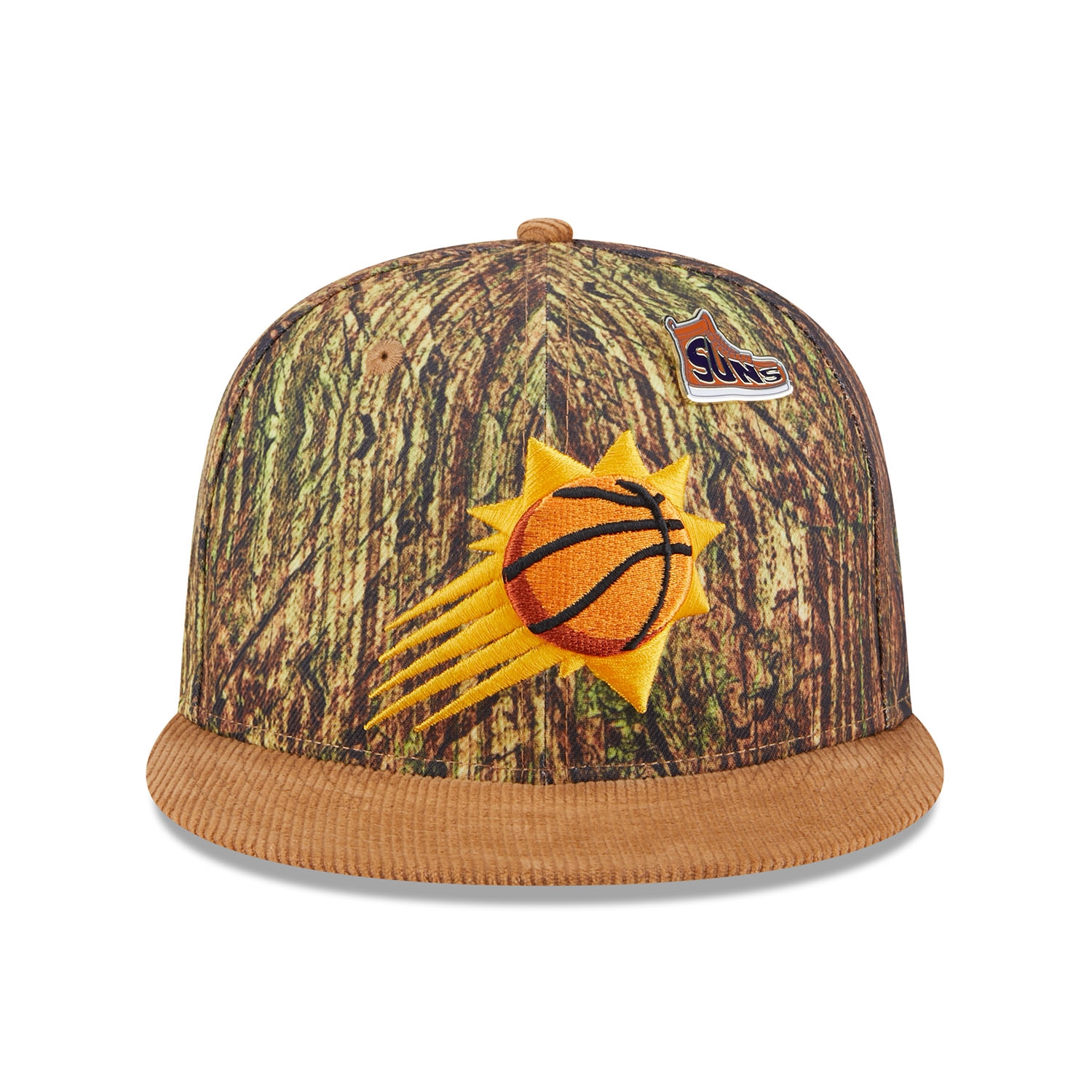 This New Era 9FIFTY Snapback Cap from the official 2025 NBA All-Star Game Collection sets new standards in style with its Forrest Camo design and high-quality corduroy visor. The striking 3D-embroidered Phoenix Suns team logo on the front enhances the sporty look, while the exclusive sneaker pin adds an extra touch of individuality.