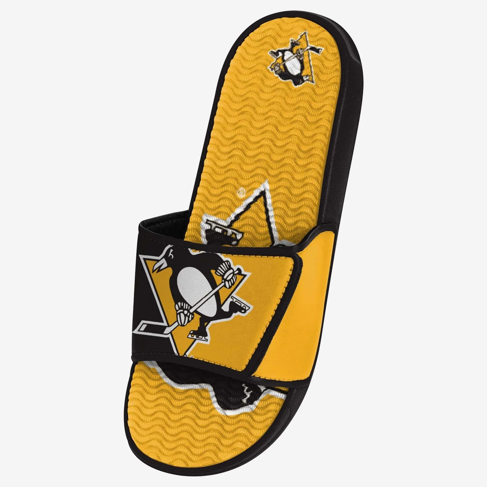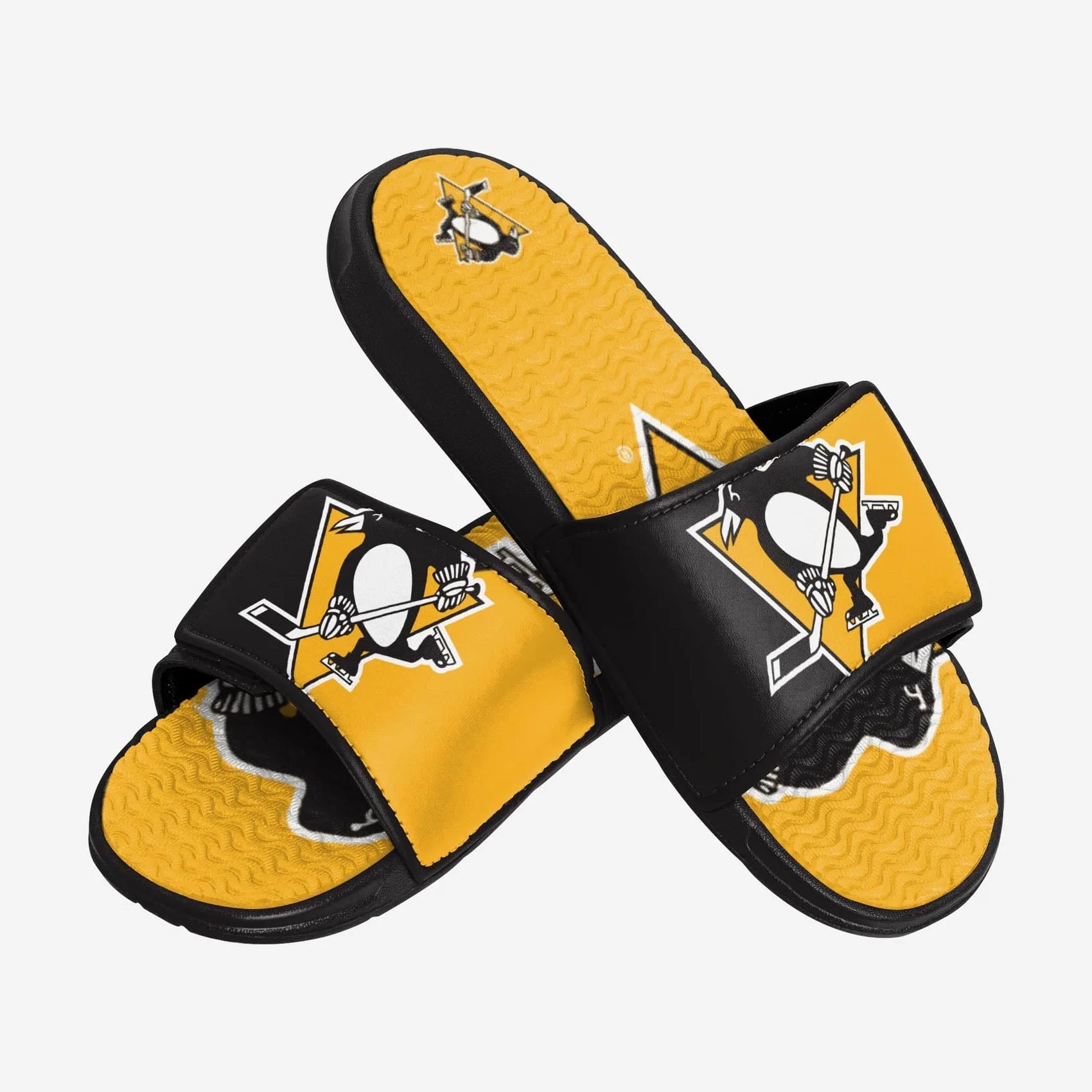 FOCO NHL Men's Big Logo Gel Slides from your Pittsburgh Penguins.