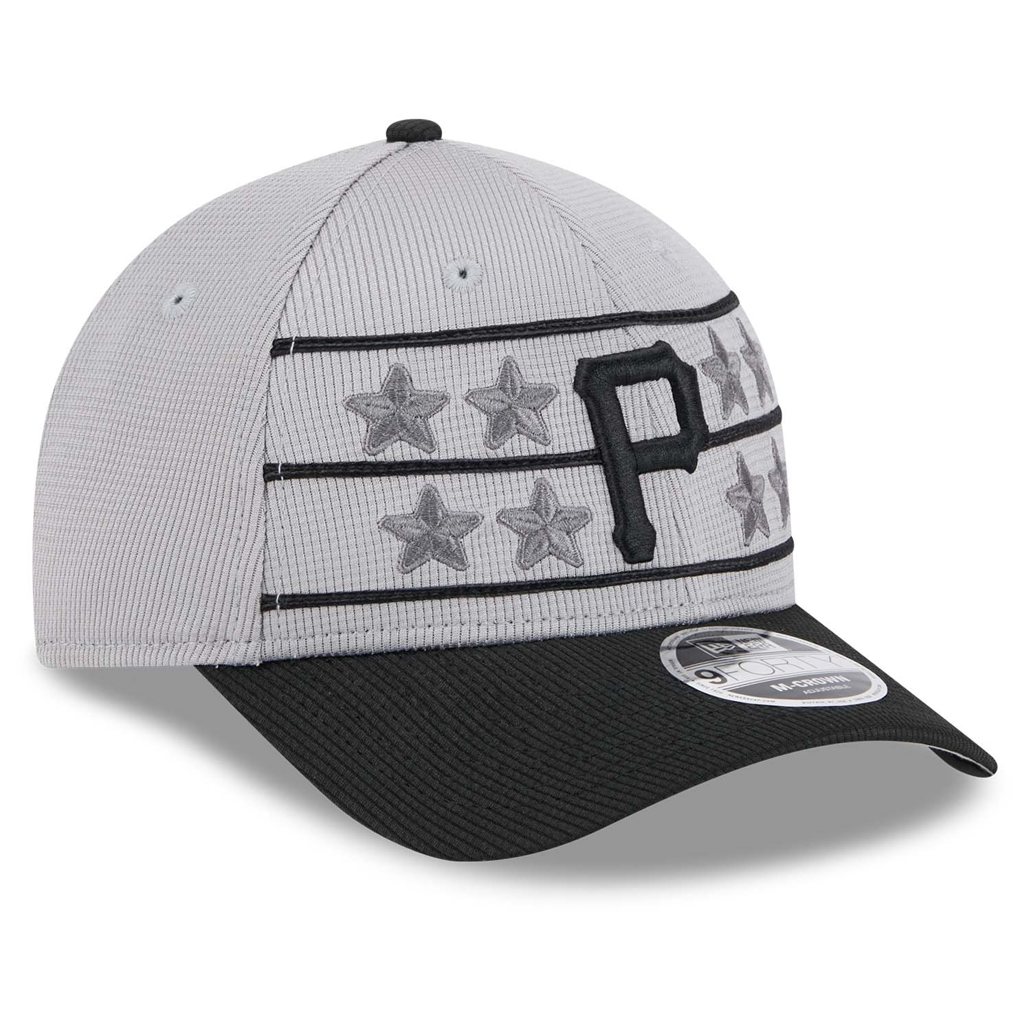 New Era MLB Gray Colorway 2025 Batting Practice 9FORTY M-Crown Adjustable Snapback Hat from your Pittsburgh Pirates.