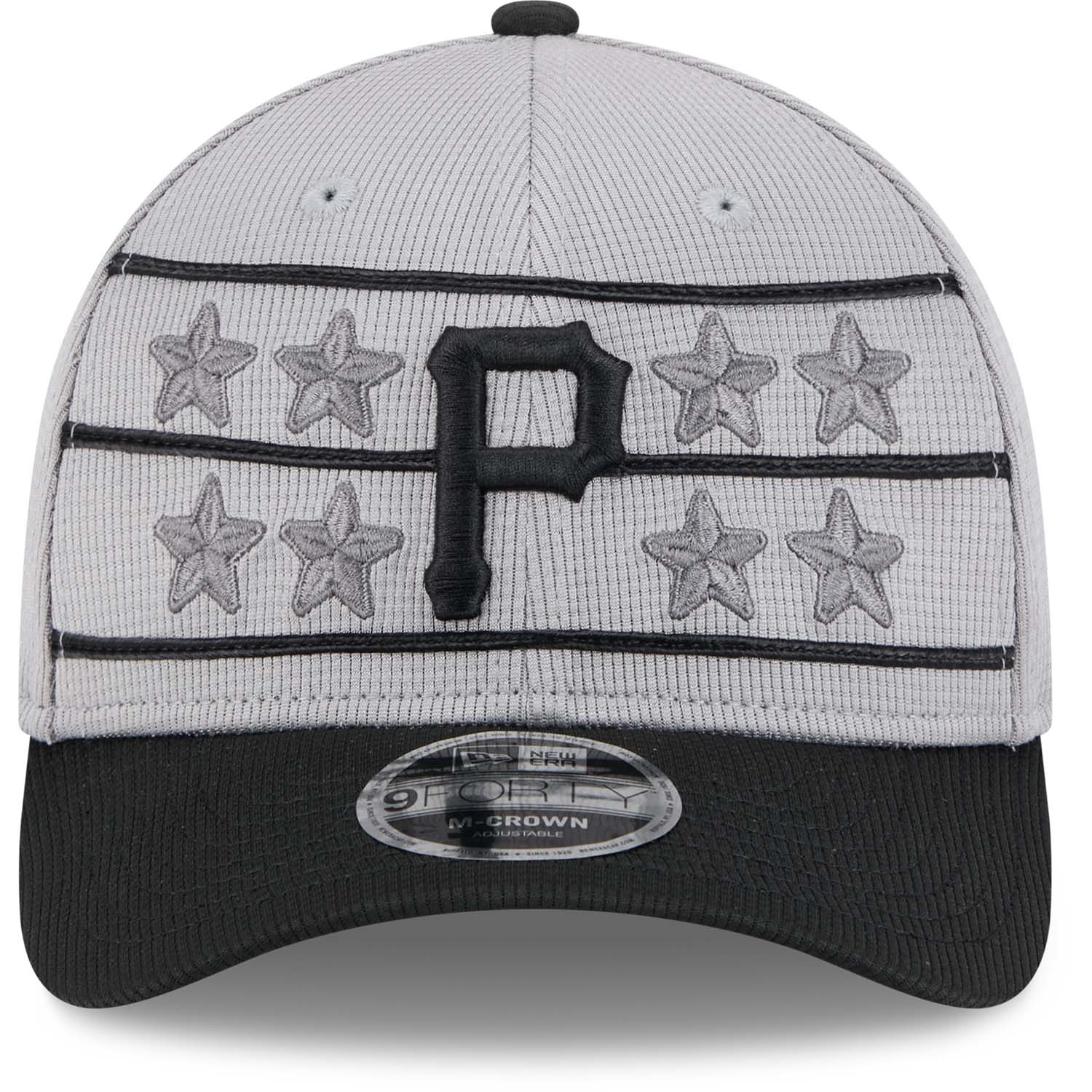 New Era MLB Gray Colorway 2025 Batting Practice Collection 9FORTY M-Crown Adjustable Snapback Hat from your Pittsburgh Pirates.