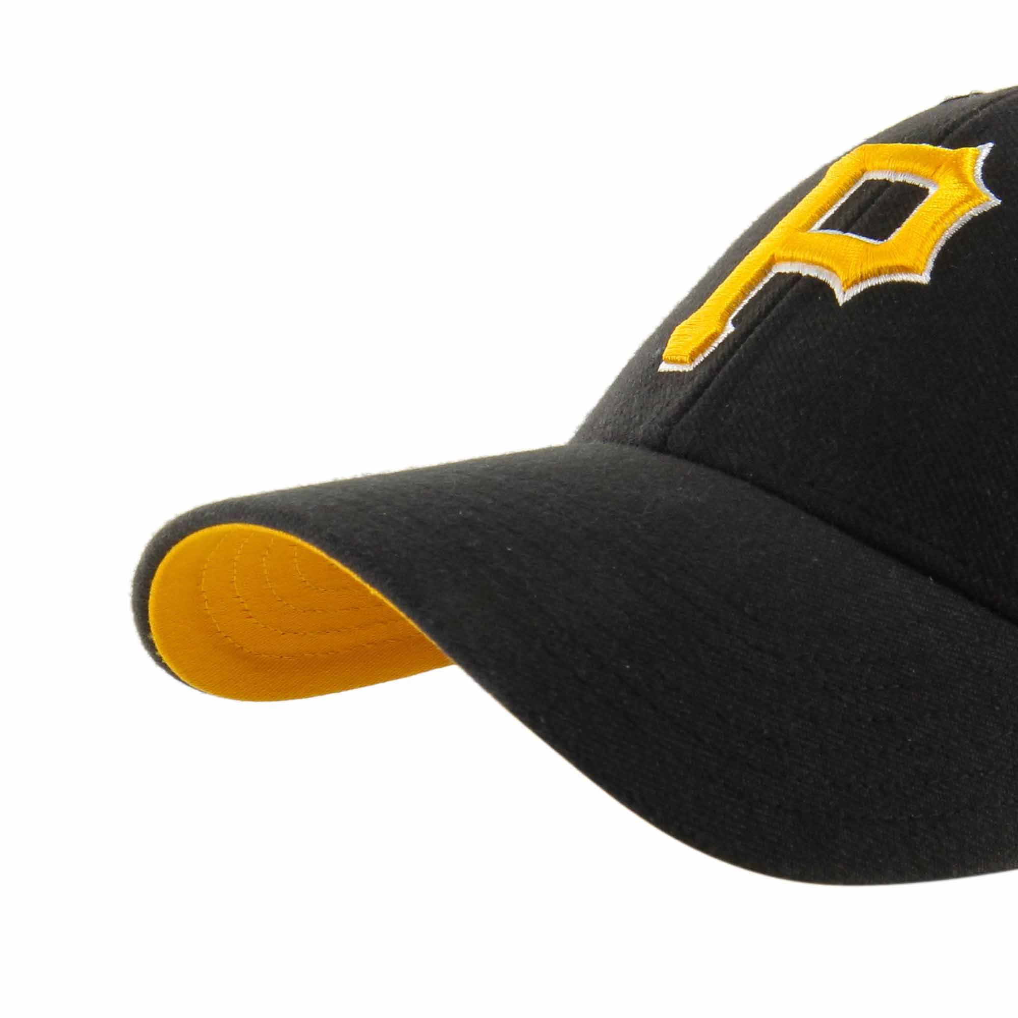 This Snapback MVP Hat features Pittsburgh Pirates team logo on front and embroidered alternate team logo on right cap panel. '47 logo on left side. The cap is made from high-quality materials that ensure durability and comfort.