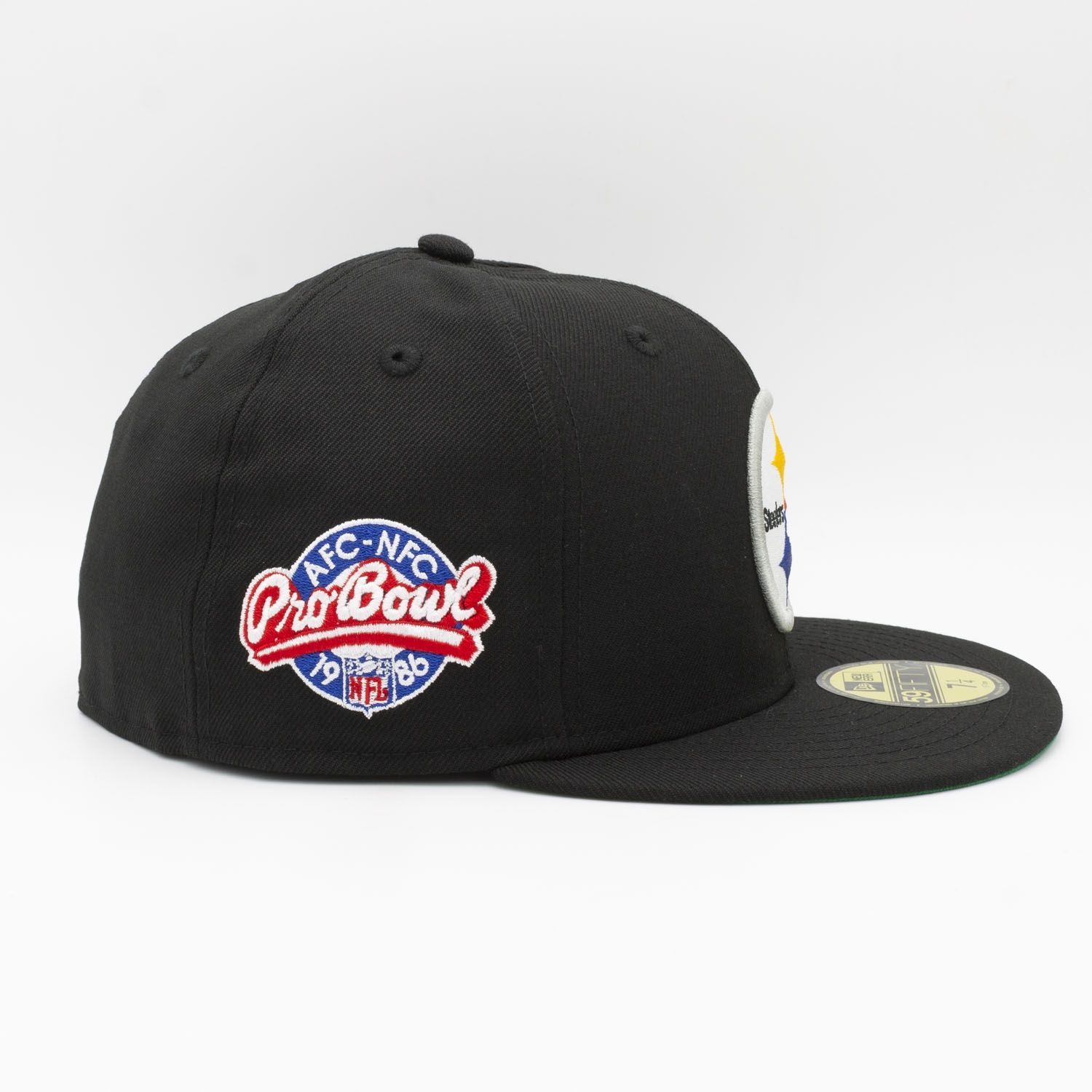 New Era NFL Black American Football 59FIFTY Fitted Hat from your Pittsburgh Steelers with 1986 Pro Bowl Side Patch.