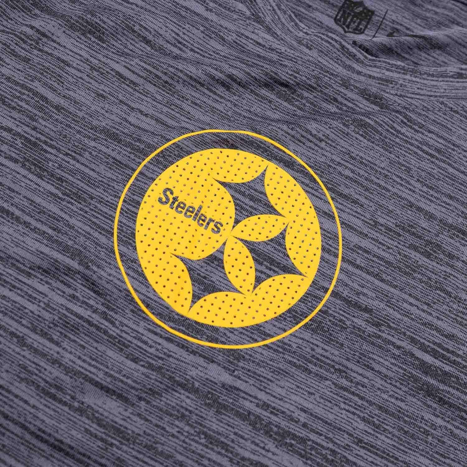 Prominently placed on the front is the bold Steelers logo, with the NFL Shield on the right sleeve and the Nike Swoosh logo on the left. Made from lightweight, soft 100% performance polyester for superior comfort..