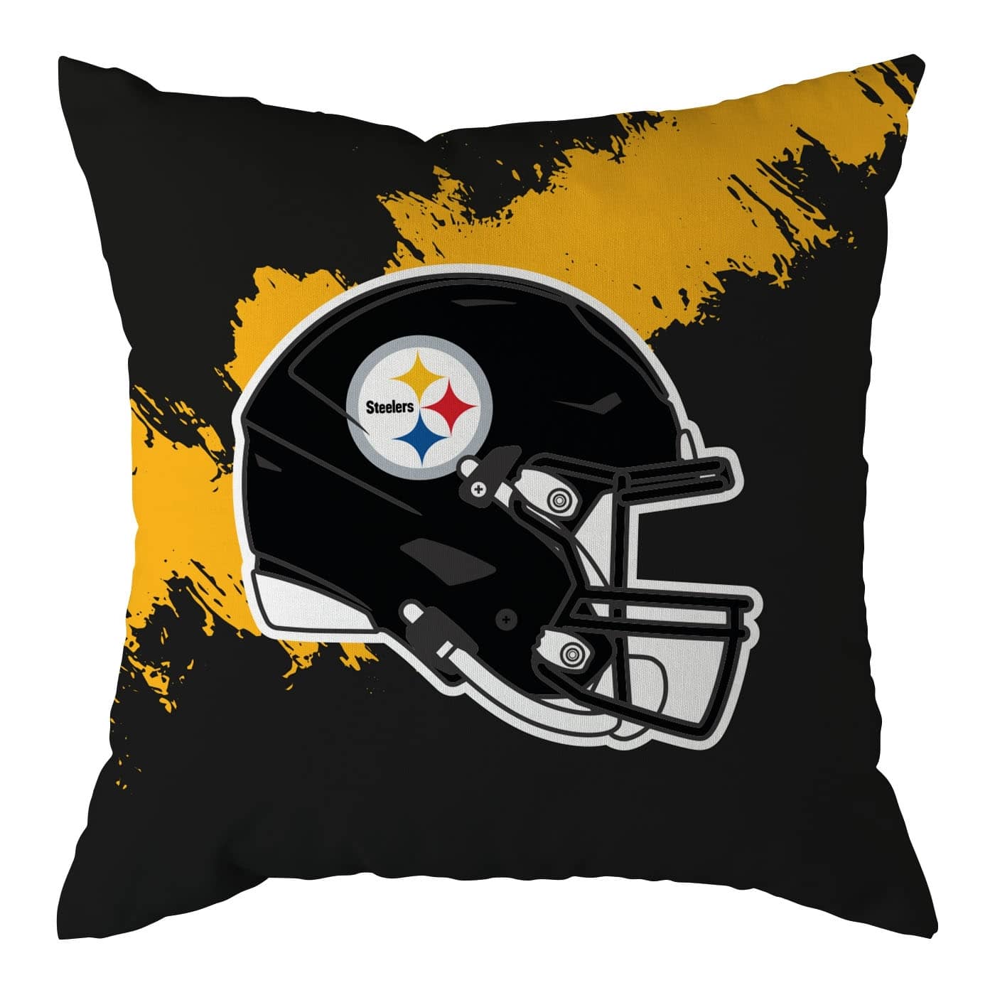 Snuggle, decorate or have your best dreams with this brush styled pillow. A must-have for any football fan it features Pittsburgh Steelers logo on front and team helmet on back.