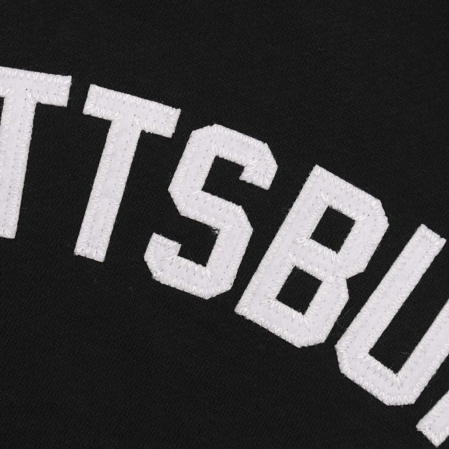 Premium quality Pittsburgh Steelers Hooded Pullover Women's Sweatshirt by Mitchell and Ness. Embroidered throwback team logo on left chest and back felt team wording. NFL Throwbacks woven jocktag at inner left hem and Mitchell & Ness wording on right bottom sleeve. With two single welt pockets and a slouchy hood with drawcord closure.