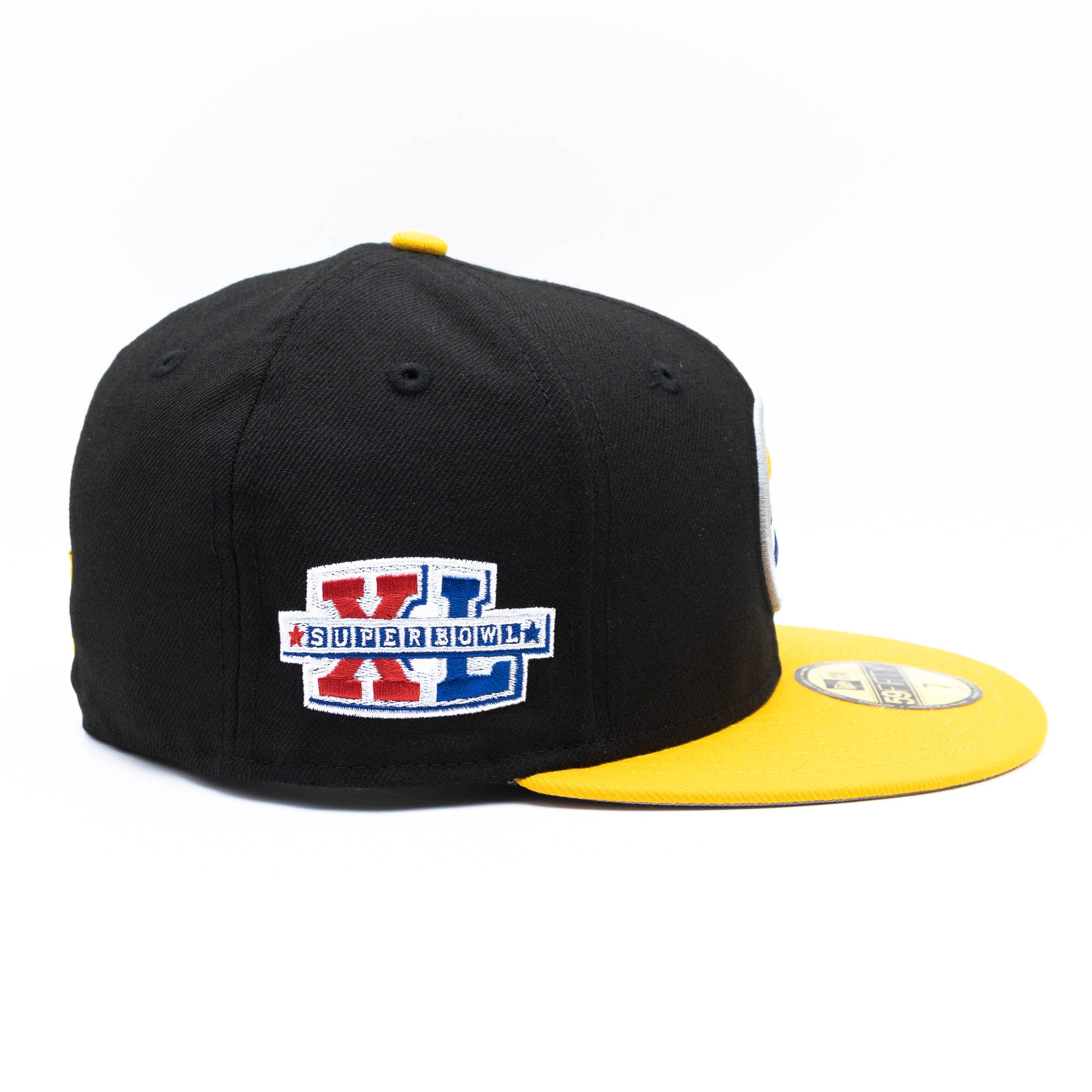 This Super Bowl premium quality New Era Cap is part of the TAASS.com Exclusives Collection. With Pittsburgh Steelers team logo embroidered (raised) on front and Super Bowl patch on right cap panel. NFL shield logo on back.