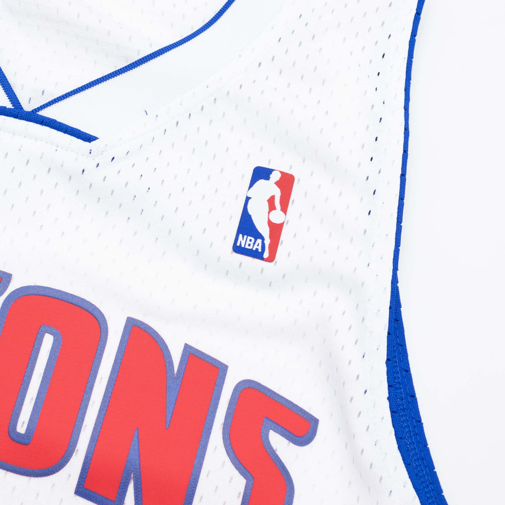 Rep your favorite team and player anytime in the NBA Swingman Hardwood Classics Jersey, replicating what the Detroit Pistons have worn on the court during that era. With heat seal screen printed twill logo, name and number applications. The body is made from 100% polyester mesh. Woven Hardwood Classics-Mitchell & Ness jocktag at front lower left.