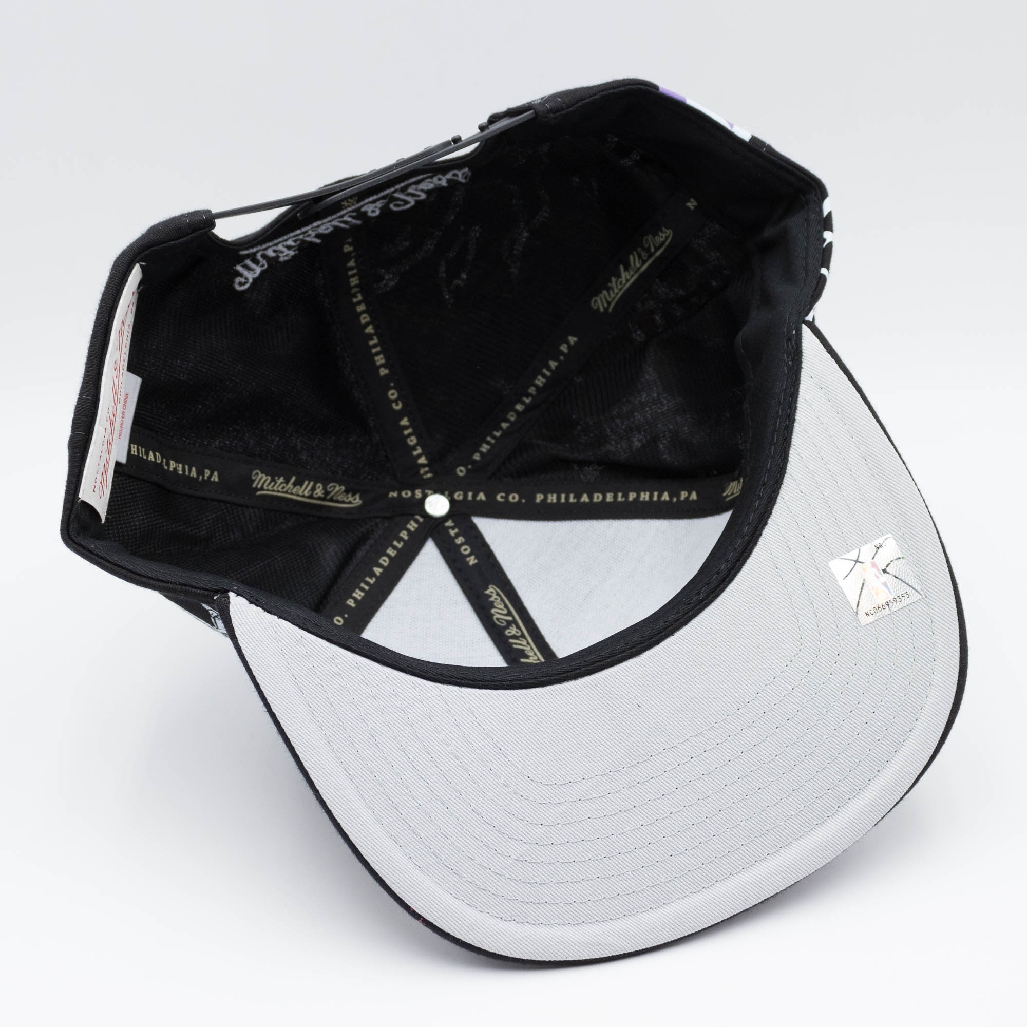Mitchell & Ness Original Fit Snapback profile with a high structured crown and small, flat visor. Stitched eyelets for breathability. Interior includes branded taping as well as a moisture absorbing sweatband. A snapback closure for an adjustable fit.